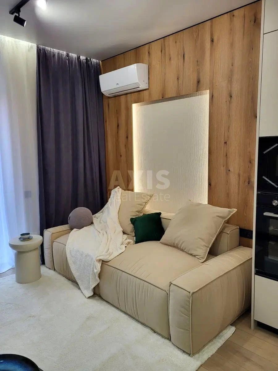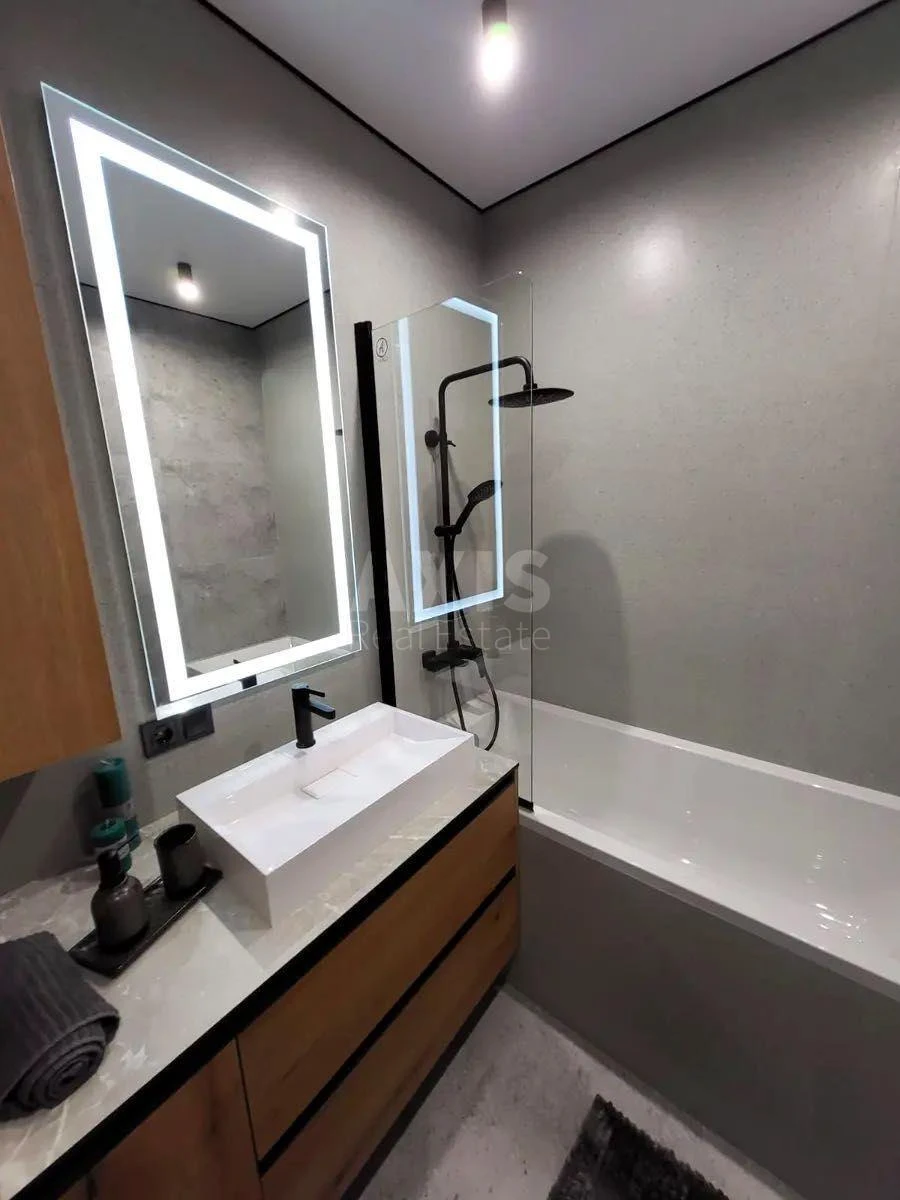 ЖК Respublika, 1 кімнатна квартира. Планування: кухня-вітальня, спальняа кімната, санвузол, балкон. Квартира після будівельників, з пожежною сигналізацією, сучасною вентиляційною системою. У підїзді облаштовано місце під колясочну, велосипеди. Архітектура ЖК європейського зразка, з великим променадом, басейном, охороною по периметру і відеоспостереженням. Комплекс, площею 110 гектарів, побудований за принципом місто в місті. На території дитячий садок, школа, фітнес-клуб, тенісний корт, баскетбольні майданчики, футбольне поле, спортивні майданчики облаштовані тренажерами, барбекю-зони. Перші поверхи передбачені під комерцію, що створює певний комфорт. Доглянута територія з безліччю зон відпочинку, сучасні дитячі майданчики.
