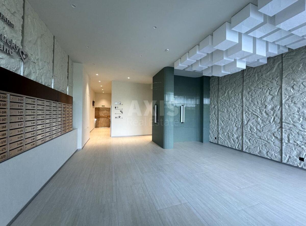 ЖК Lucky Land, 1 кімнатна квартира. Має стильний дизайнерський ремонт із використанням якісних матеріалів та повністю укомплектована сучасними меблями й побутовою технікою європейських виробників: Electrolux, Samsung, Franke, Candy. Стіни оздоблені декоративною штукатуркою та італійським керамогранітом. Оснащена двома альтернативними системами опалення: «тепла підлога» по всій площі (три зони) та електрокотел з радіаторами. Кухня обладнана вбудованою індукційною плитою, духовою шафою та витяжкою. Електрика та сантехніка виконані з використанням відомих німецьких брендів Ghroe, Schneider, Eaton. Натяжна стеля з прихованими карнизами, лінійним трековим освітленням і LED-підсвіткою. У квартирі встановлені бойлер на 80 л (Atlantic) та інверторний кондиціонер TCL. Великі панорамні вікна забезпечують гарний вид на двір. Планування кімнат – студія. Є телевізор, шафа, холодильник, ліжко, кондиціонер, лічильники, душова кабіна. Квартира готова до проживання, стан – дизайнерський ремонт. Будинок зданий в експлуатацію, із сучасними конструктивними рішеннями, теплий і надійний. Територія прибудинкова, закрита та без авто, із власною охороною та постійним відеонаглядом. Поруч із будинком розташовані ТРЦ Lavina, Ашан, Епіцентр, Новус, а також великий хвойний ліс площею 100 га. До станції метро «Академмістечко» 3 км, транспортна розв’язка зручна, у майбутньому планується відкриття нової станції метро.