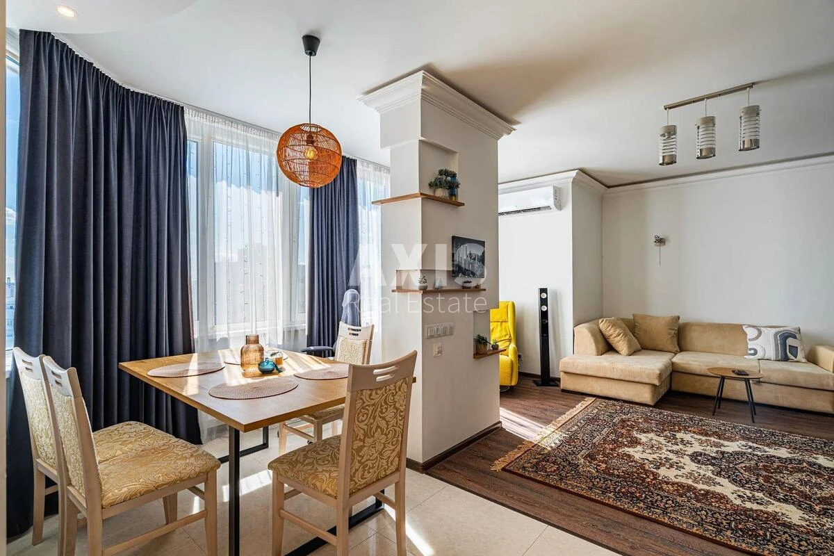 1 кімнатна квартира. Сучасна світла квартира з євроремонтом у світлих тонах, повністю мебльована й майже не використовувалась. Простора гардеробна, підігрів підлоги, суміжний санвузол з душовою кабіною, встановлені всі лічильники. Оснащена якісною побутовою технікою: холодильник, варильна панель, посудомийна машина Bosch, мікрохвильова піч, пральна машина, телевізор і кондиціонер Cooper&Hunter. Підключено кабельне і цифрове телебачення, Wi-Fi. Квартира тепла та повністю готова до заселення. Будинок монолітний, комфорт-класу, з централізованим опаленням. У під’їзді працює консьєрж, є пасажирський і вантажний ліфти, встановлено генератор для автономної роботи. Територія доглянута, із сучасним внутрішнім двором. На першому поверсі — дитячий садок, аптека, магазин «Чорноморка». У пішій доступності — ТРЦ River Mall з кінотеатром, інші торгові центри, супермаркети Novus, Varus, АТБ, Сільпо, фітнес-клуби, кафе та ресторани. Поблизу — озеро Сонячне, парк, зелені зони для прогулянок і відпочинку. Зручне транспортне сполучення — до метро «Позняки» 10 хвилин пішки, поруч зупинки громадського транспорту, школи, садочки й дитячі майданчики.