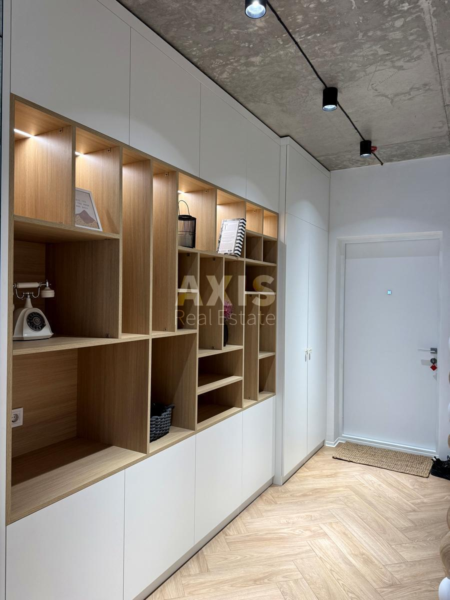 ЖК Бережанський, 1 кімнатна квартира. Сучасна квартира-студія з дизайнерським ремонтом, у якій ще ніхто не проживав. Інтер’єр виконано у стриманому стильному дизайні з використанням зносостійких та практичних матеріалів. Стіни оздоблені декоративною штукатуркою, підлога — клейовий кварцвініл, у санвузлах — плитка з керамограніту та мікроцементу. Встановлено вбудовану сантехніку італійських і німецьких брендів, якісну електрофурнітуру та продумане освітлення. Балкон утеплений і облаштований опаленням, тому залишається теплим протягом року. Стеля з гіпсокартону без використання натяжних конструкцій. Тепла підлога встановлена у санвузлі та на балконі. У квартирі нові меблі та техніка провідних виробників — Whirlpool, Bosch, Electrolux. Є кондиціонер, телевізор, холодильник, пральна та посудомийна машини, шафа, ліжко. Санвузол облаштований душовою кабіною та якісною сантехнікою. Вхідні двері — броньовані. Квартира ідеально підходить як для власного проживання, так і для орендного бізнесу. Новий будинок уже заселений і обладнаний усіма необхідними зручностями для комфортного життя. Є охорона, пандус для безбар’єрного доступу, встановлені лічильники на опалення. Будинок має резервне живлення від генератора, що забезпечує роботу водопостачання, опалення, ліфтів та інтернету навіть під час відключень світла. Доглянута прибудинкова територія з облаштованими пішохідними зонами, зручними підходами та зеленими насадженнями. Поруч — магазини, кафе, зупинки громадського транспорту. Продаж можливий за державною програмою єОселя.