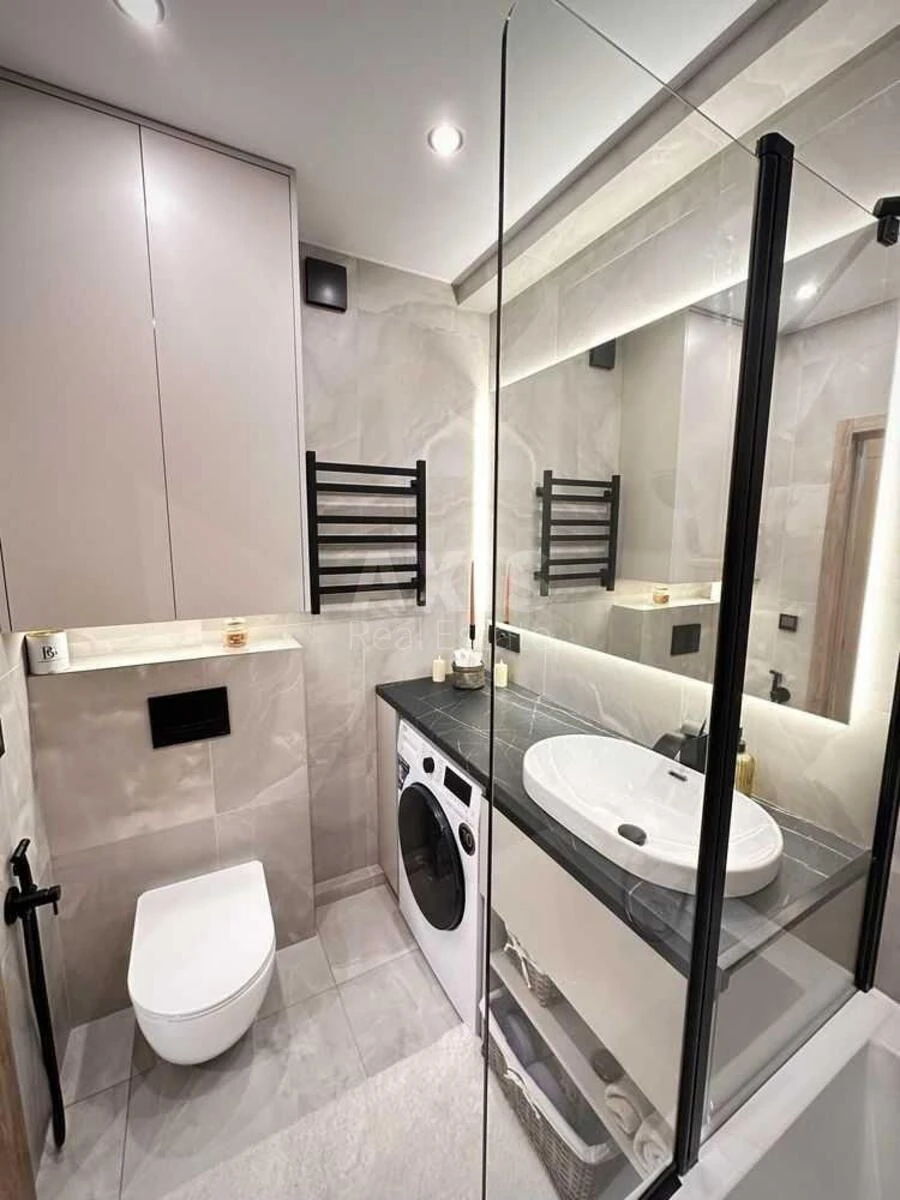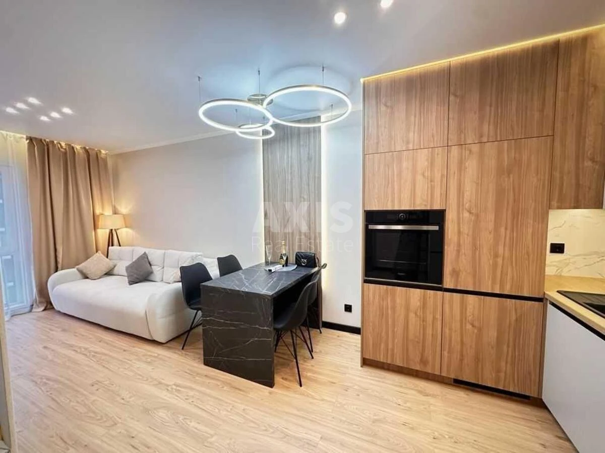 ЖК Нова Англія, 1 кімнатна квартира. В квартирі зроблено дизайнерський ремонт з якісних матеріалів, встановлено, найсучаснішу побутову техніку. Окрема спальня з ліжком King-size – відчуйте справжню релаксацію. Простора кухня-вітальня – місце, де затишок зустрічається з сучасними технологіями. Величезний диван Zlatamebel (антикоготь easy clean) – ідеальний для кіно-вечорів.