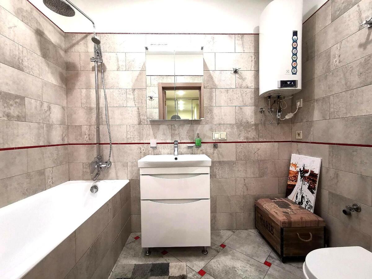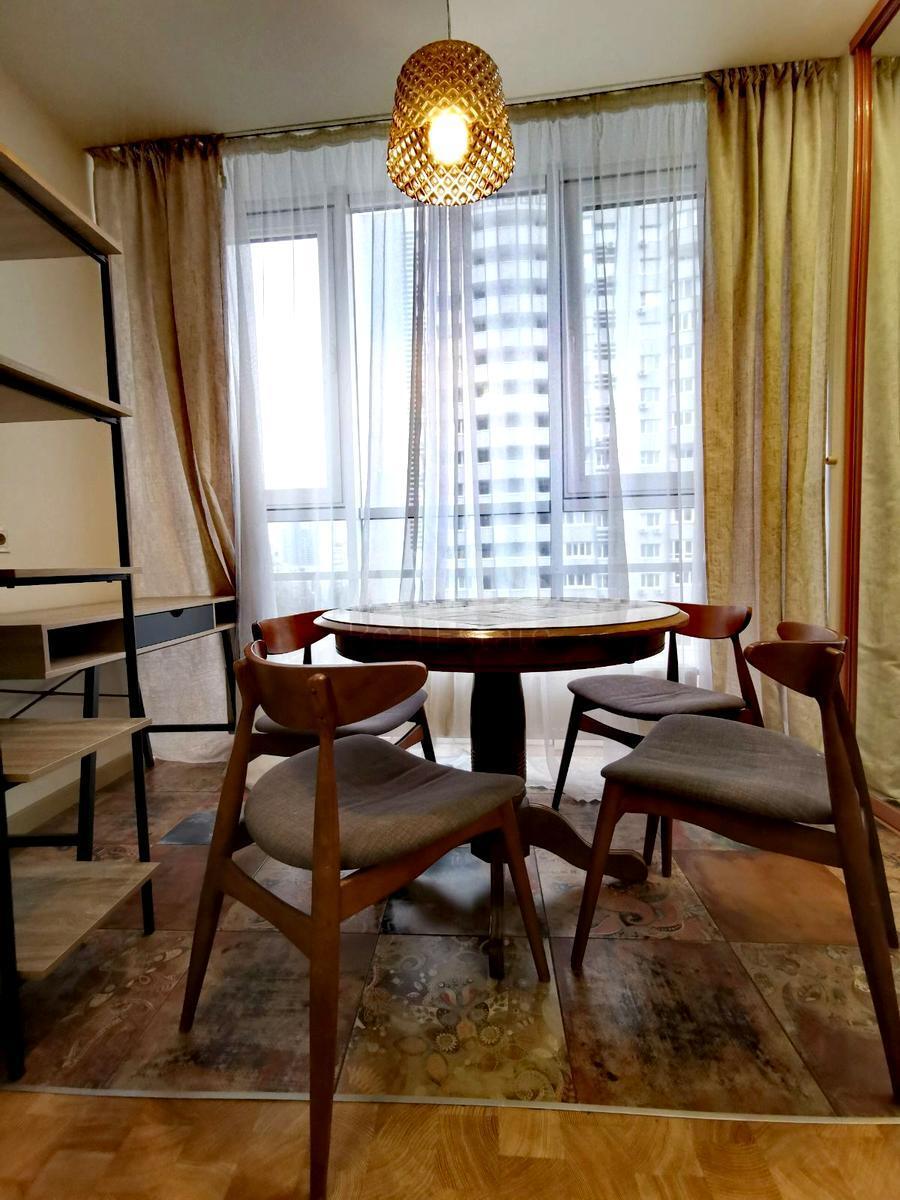 ЖК Касіопея, 1 кімнатна квартира. Ліжко з гарним ортопедичним матрацом. Вбудована функціональна кухня зі зручними місцями зберігання. Посудомийну машину, пральну машину, вбудований холодильник, бойлер, кондиціонери - приємне доповнення до квартири. Містка шафа в передпокої.
