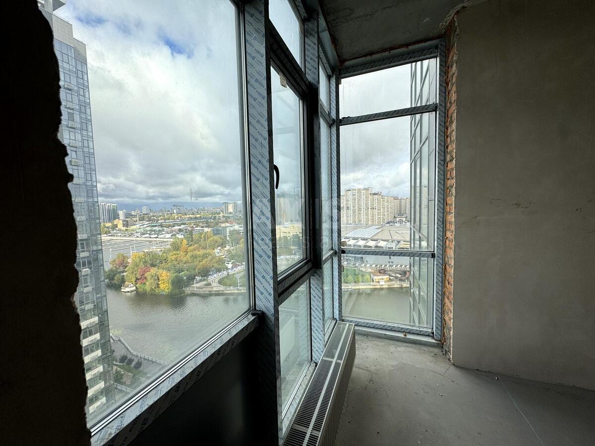 ЖК RiverStone, 1 кімнатна квартира. Планування та переваги: при вході передбачено місце для облаштування великої гардеробної кімнати. Простора кухня-вітальня з панорамними вікнами. Окрема спальня з панорамними вікнами та краєвидом на Дніпро. Великий санвузол, у якому можна розмістити як душову кабіну, так і ванну. Найбільше планування серед однокімнатних квартир у комплексі — за бажанням можна перепланувати у двокімнатну.