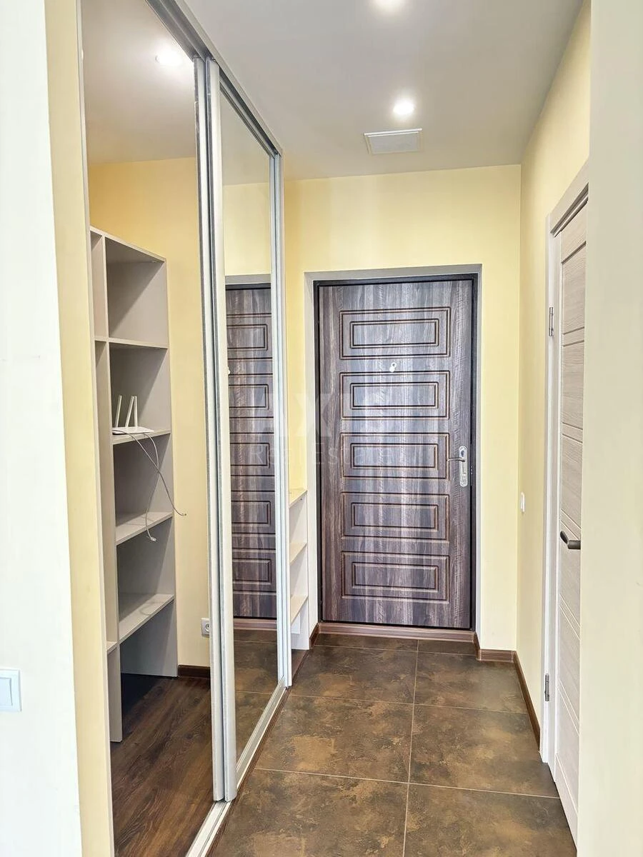 ЖК «Місто квітів. Парковий Квартал», 1 кімнатна квартира. Стильна квартира-студія з сучасним євроремонтом, повністю мебльована та укомплектована всім необхідним для комфортного проживання. Простір продуманий та функціональний: простора кухня з обіднім столом, зручне двоспальне ліжко та велика містка гардеробна кімната для зберігання речей. Квартира обладнана всією необхідною побутовою технікою: холодильник, варильна панель, духова шафа, мікрохвильова піч, пральна машина, телевізор. Є швидкісний інтернет та Wi-Fi. У квартирі встановлено кондиціонер. Велика ванна кімната облаштована ванною та душовою кабіною. Затишний засклений балкон можна використовувати як робочий кабінет або зону відпочинку, а панорамні вікна забезпечують багато природного світла. Сучасний будинок із централізованим опаленням, обладнаний ліфтами, у тому числі вантажним. У під’їзді працює конс’єрж, встановлена пожежна сигналізація. Територія комплексу закрита та перебуває під охороною, що забезпечує додатковий комфорт і безпеку для мешканців. Житловий комплекс має доглянуту територію з великою кількістю зелених зон, спортивними та дитячими майданчиками. На території є супермаркет Фора, спортивний зал, магазини, кав’ярні, аптеки, банкомати, а також відділення Нової пошти та Укрпошти і дитячий садок. Передбачено паркінг для автомобілів. Поруч розташовані парк «Дубки» та Сирецький дендропарк, що створює приємну атмосферу для прогулянок та відпочинку. Станція метро Сирець знаходиться приблизно за 15 хвилин пішки через парк, поруч також є зупинки громадського транспорту.