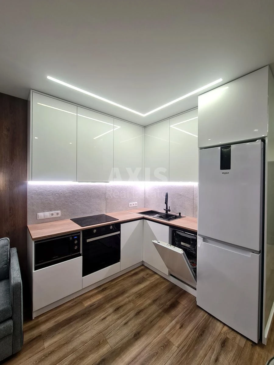 ЖК Багговутівській, 1 кімнатна квартира. Планування: простора кухня-вітальня з диваном і виходом на балкон, окрема кімната з ортопедичним диваном, двома вмісткими шафами, телевізором та кондиціонером, просторий видовий балкон, який обладнаний робочим місцем. Окрема гардеробна кімната з безліччю місць для зберігання речей.