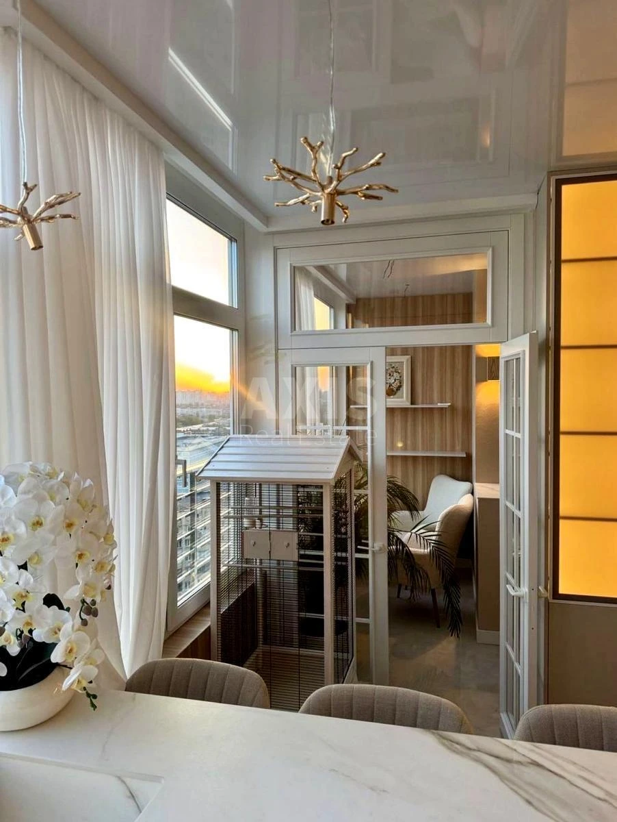 ЖК Династія, 2 кімнатна квартира. Усі меблі виготовлені на замовлення. Кухня преміум-рівня (≈10 000 $) зі стільницею з керамограніту. Спальня з меблями з Італії, має власний балкон. Зонування виконане скляними дверима у французькому стилі. Є окремий гардероб. Тепла підлога — по всій квартирі.