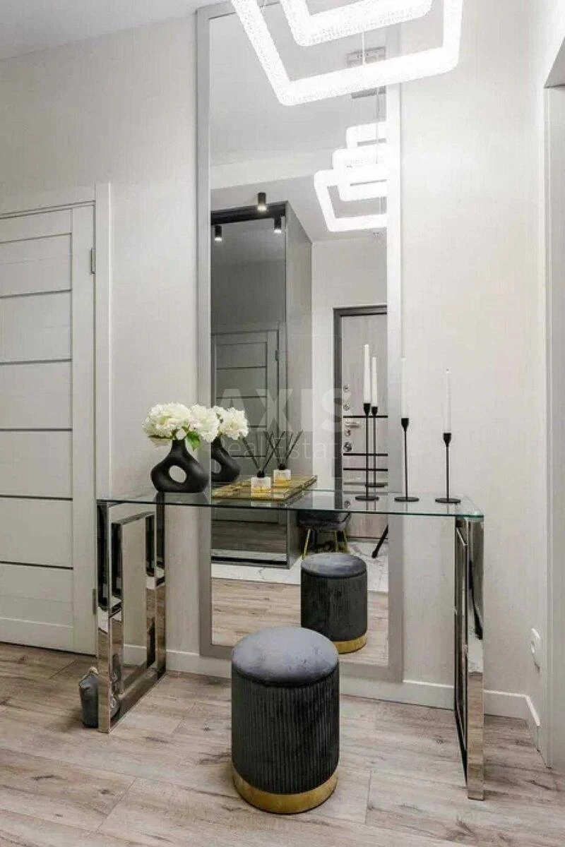 ЖК Нова Англія, 2 кімнатна квартира. Планування: кухня-вітальня, 2 окремі спальні, санвузол. В квартирі виконано якісний дизайнерський ремонт та встановлено техніку провідних світових брендів. Поруч з ЖК знаходяться найбільший в Україні ТРЦ Respublika Park, Сільпо, Епіцентр, ЖК Метропліс, Кришталеві Джерела, Паркленд, Parland, Республіка, Perfectown, Лікоград.