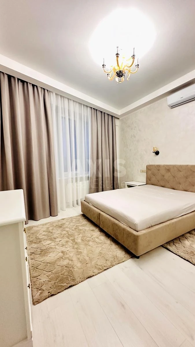 ЖК Сонячна Рів’єра, 2 кімнатна квартира. Видова з дизайнерським ремонтом, вбудована кухня-вітальня, дві спальні окремо з гардеробною кімнатою, сучасні меблі, двоспальне ліжко з ортопедичним матрацом, кутовий диван, шафи купе, вся необхідна побутова техніка, балкон засклений, охорона. Поруч Новус, паркінг, набережна, кафе, ресторани, дитсадок, школа, пішої доступності метро Лівобережна.