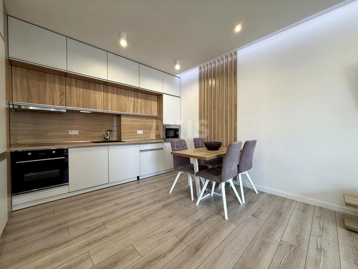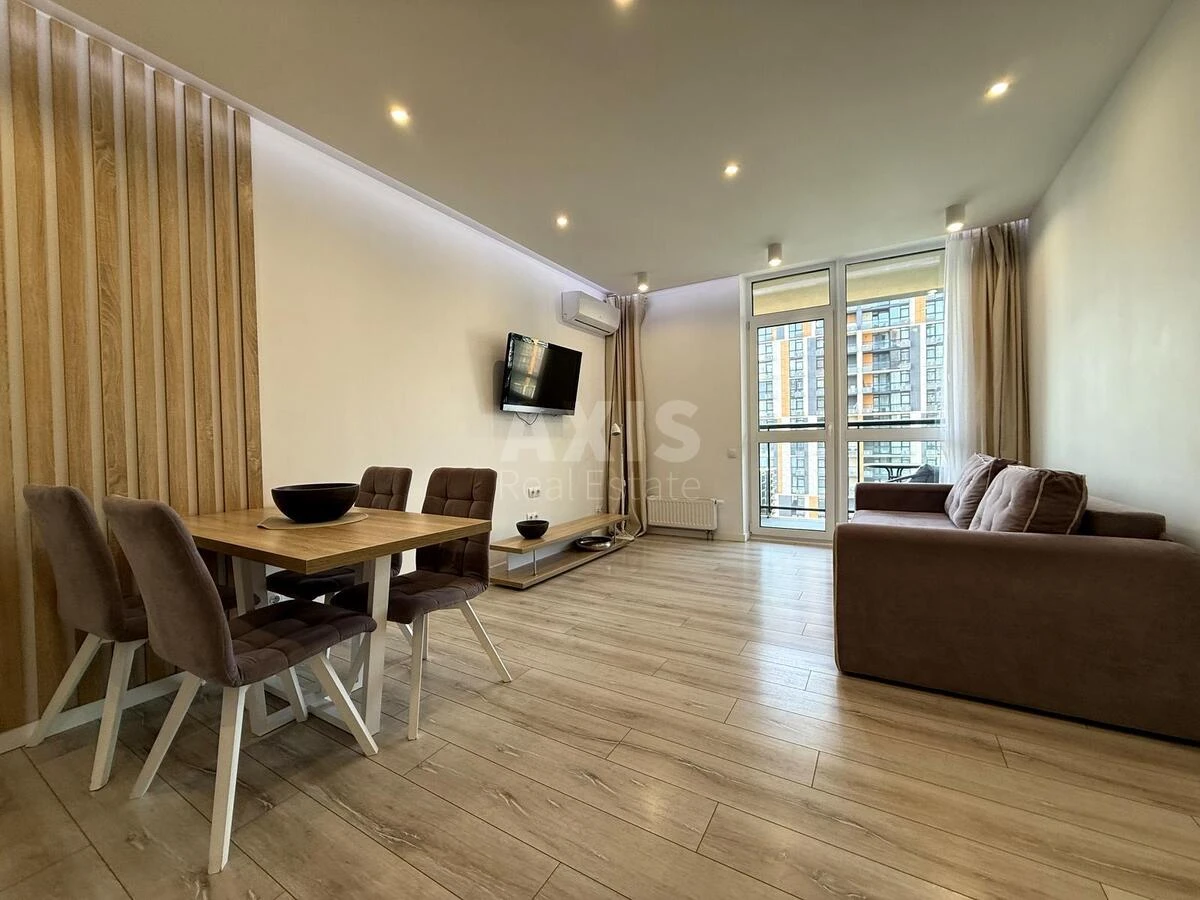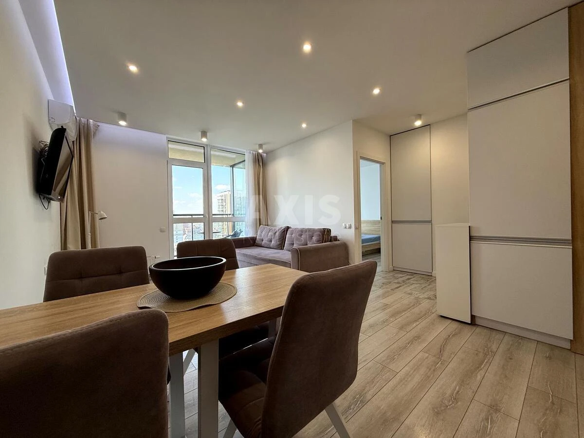 ЖК Французький квартал 2, 2 кімнатна квартира. Продумане та зручне планування: кухня-вітальня, окрема спальня, санвузол з ванною, балкон. Будинок: новий, монолітно-каркасний. Планування: роздільне. Кількість кімнат: 1 спальня + кухня-вітальня. Меблювання: двоспальне ліжко з ортопедичним матрацом і наматрацником, 2 приліжкові тумби, шафа, комод, шафа в передпокої, вбудована кухня, обідній стіл + 4 стільці.