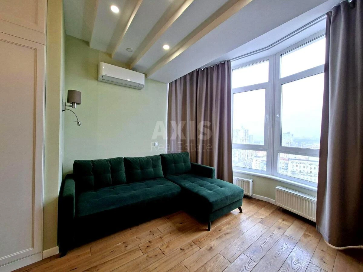 2 кімнатна квартира. Планування: велика кухня-вітальня з зоною відпочинку, окрема простора спальня, гардеробна кімната, 2 балкони, панорамні вікна з неймовірним видом на Київ. Функціональне планування створює багато простору та комфорту для життя. Квартира дуже світла та видова.