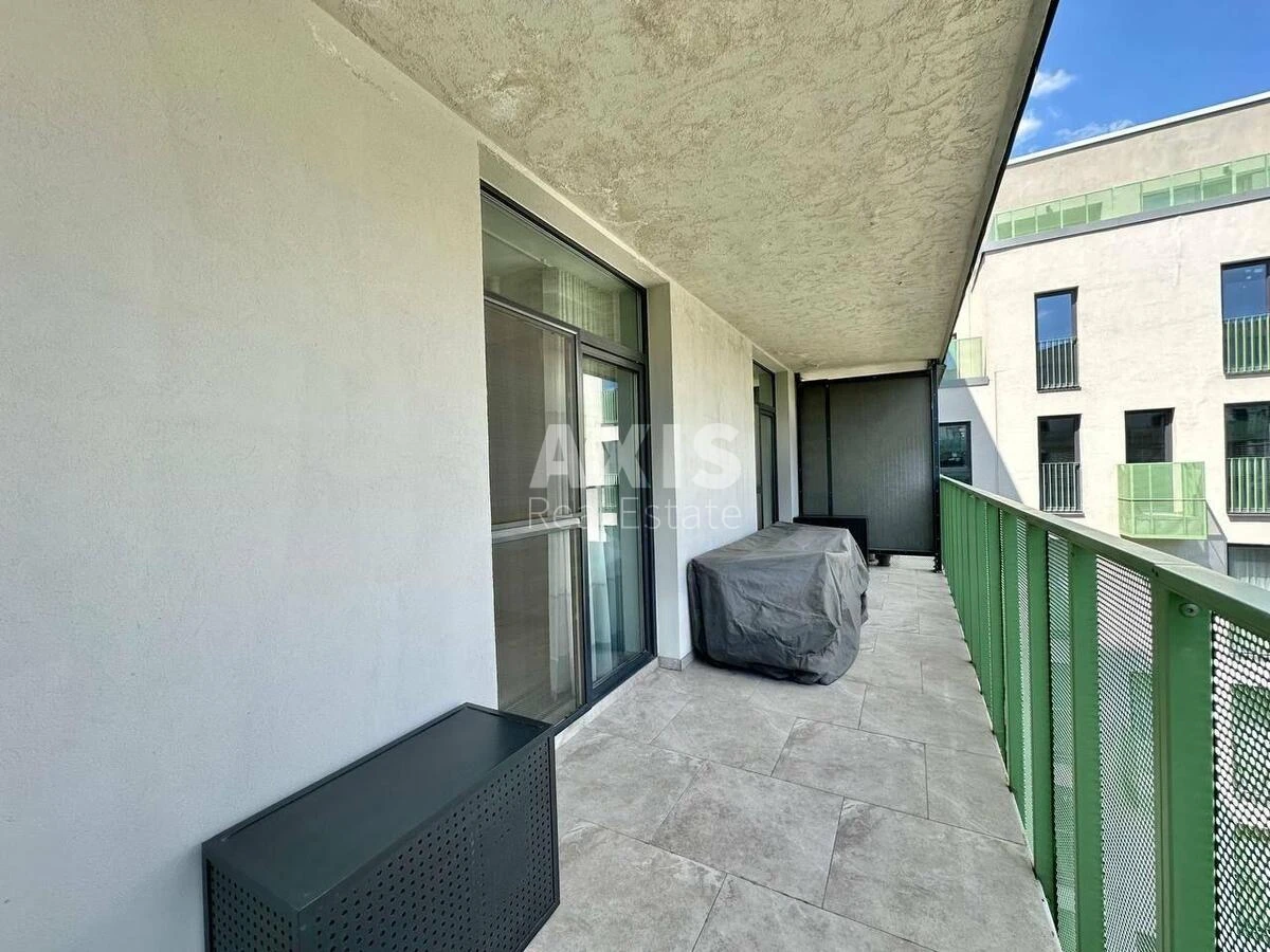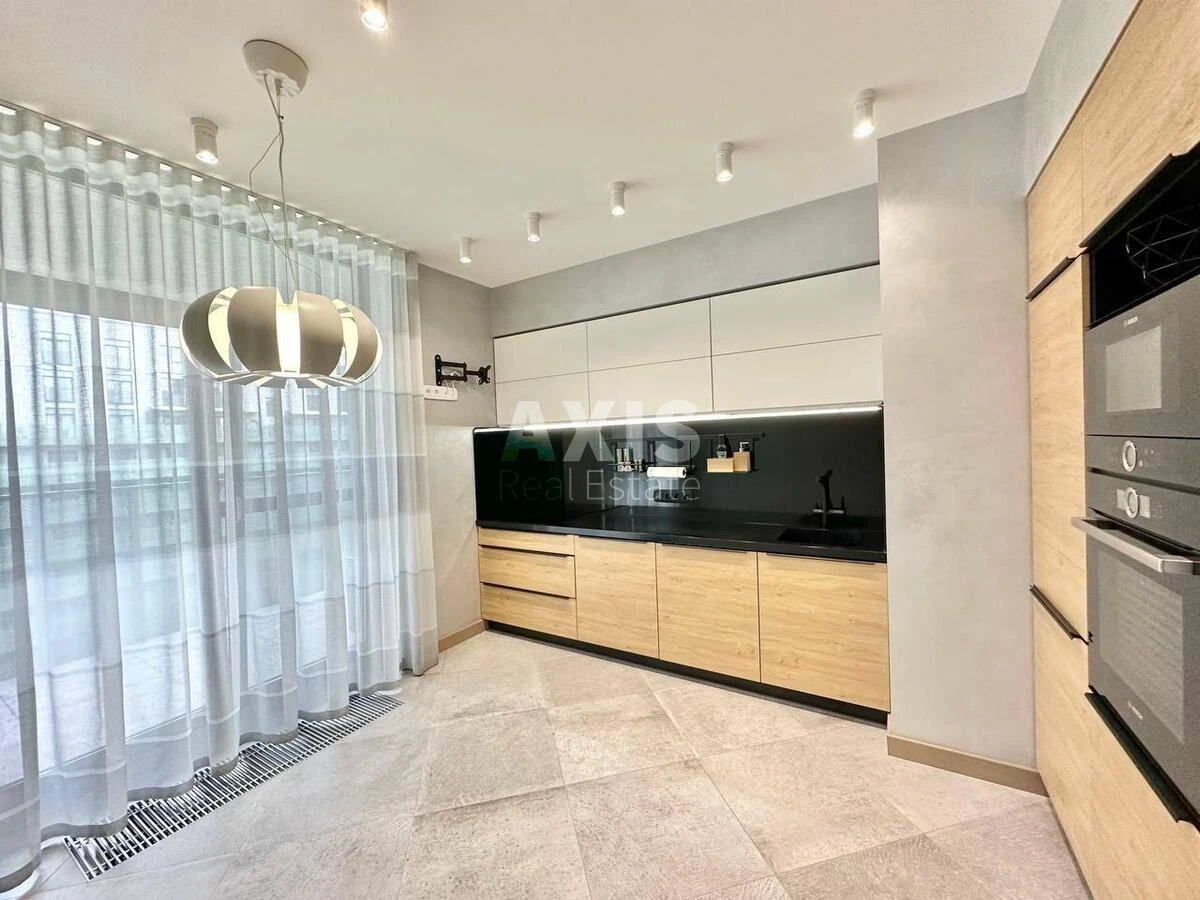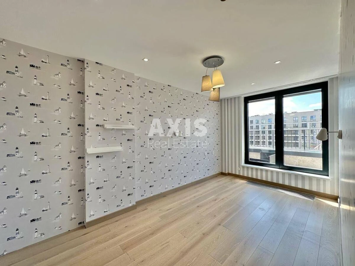 ЖК «Rybalsky», 3 кімнатна квартира. У передпокої вбудована вбиральня, кухня з виходом на балкон-терасу, вітальня з виходом на балкон-терасу, два санвузли (в одному інсталяція, другий з душовою і ванною), технічне приміщення в якому розташований водонагрівальний бак, пральна машина і місце для зберігання речей, спальня з виходом на балкон.
