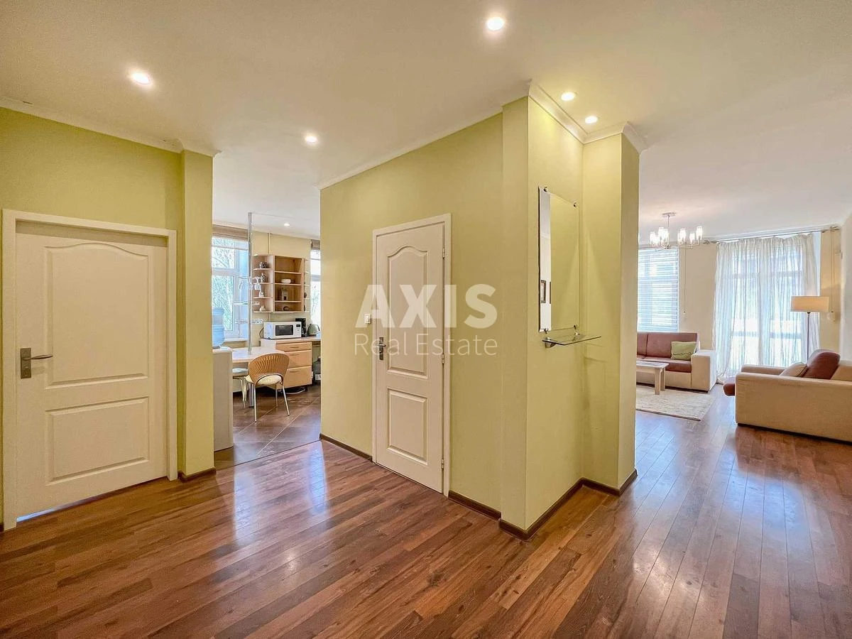 3 кімнатна квартира. Простора та затишна квартира з авторським ремонтом, повністю мебльована і готова до життя. Кухня плавно переходить у їдальню, а потім у вітальню з великим відкритим балконом площею 15 м². Головна спальня має власну робочу зону та гардеробну кімнату. Також є велика ванна кімната, гостьова спальня, гостьовий санвузол та пральня. Квартира оснащена всією необхідною технікою: плита, варильна панель, духова шафа, мікрохвильова піч, холодильник, пральна і сушильна машини. Для додаткового комфорту встановлені кондиціонери, підігрів підлоги, бойлер та Wi-Fi. Будинок розташований на тихій вулиці, під'їзд відремонтований, встановлено новий японський ліфт. Це ідеальне поєднання затишку і сучасної інфраструктури, що забезпечує комфортне проживання. Будинок знаходиться поруч зі сквером та Олександрівською лікарнею, до ТРЦ «Гулівер», Арена-Сіті та Бессарабського ринку – всього 10 хвилин пішки. Також у пішій доступності розташовані Маріїнський парк, станції метро «Палац Спорту», «Арсенальна», «Кловська» та «Хрещатик». Поруч є магазини, ресторани, школи, спортклуби та інші об'єкти інфраструктури для комфортного життя.
