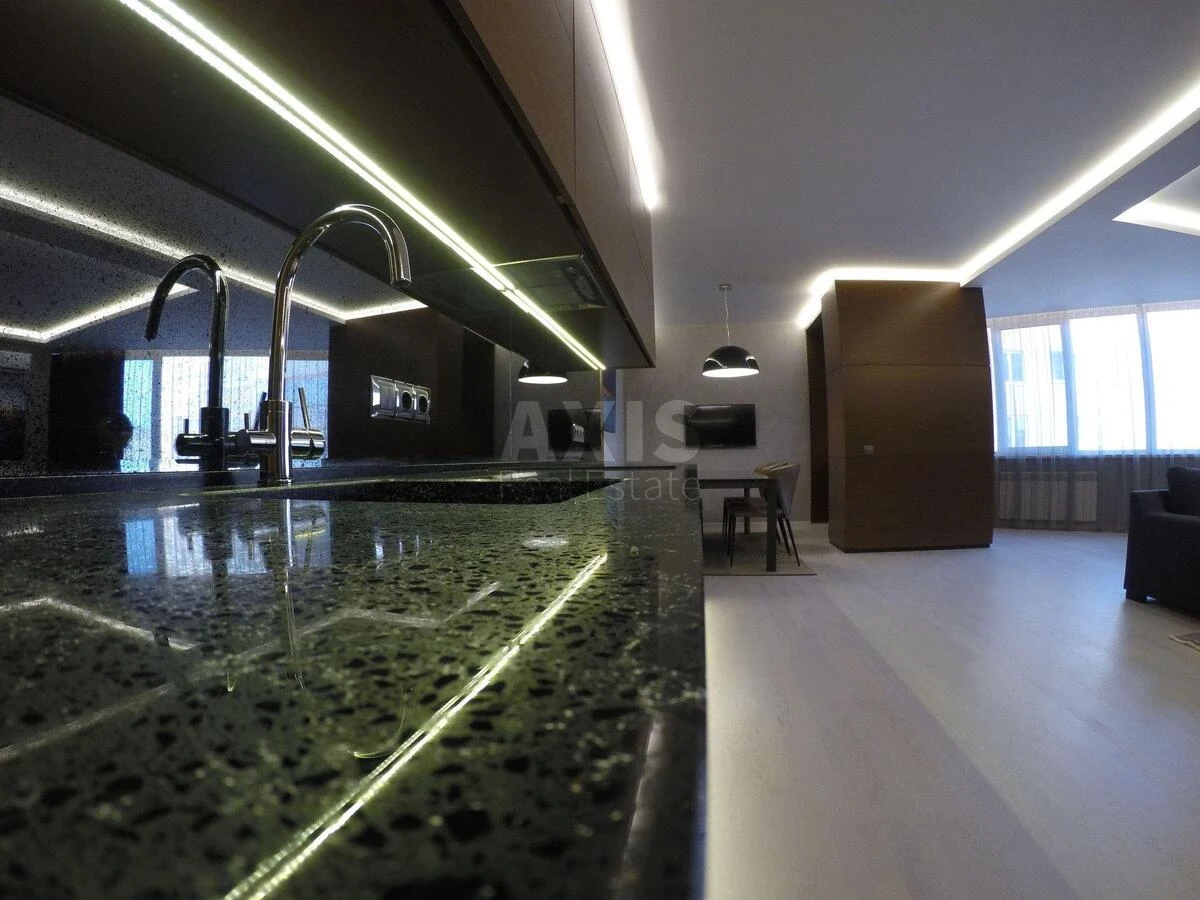 3 кімнатна квартира. Ремонт: дизайнерський, з використанням якісних матеріалів Меблі та техніка: повністю укомплектована стильними меблями, вбудована кухня з високоякісною технікою, великий телевізор, кондиціонери, пральна та посудомийна машини. Будинок: цегляний будинок бізнес-класу, закрита територія, візд через шлагбаум, ліфт спускається у підземний паркінг (є паркомісця.), дитячий майданчик у дворі.