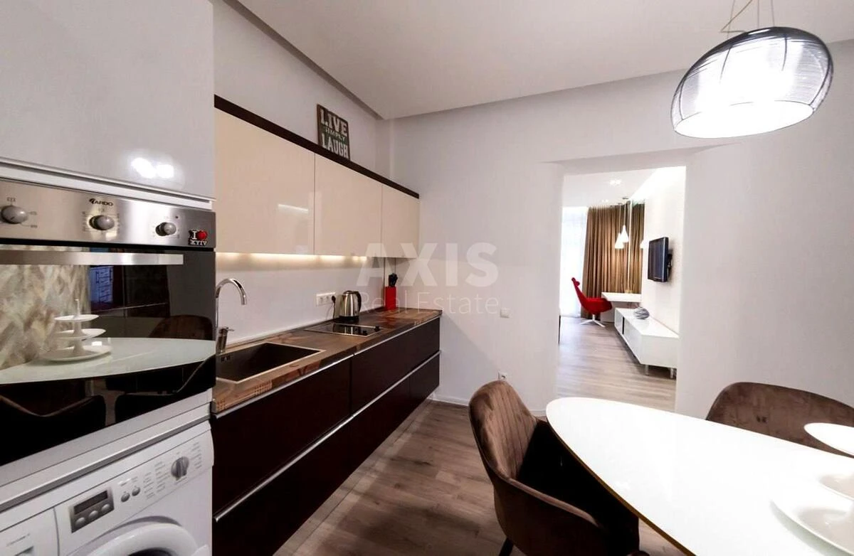 3 кімнатна квартира. Квартира розташована на 3 поверсі, загальна площа — 60 м². Простір виконаний у сучасному дизайнерському стилі з використанням якісних матеріалів, що створює атмосферу комфорту, елегантності та затишку. Особливою перевагою є власна відкрита тераса — рідкісна можливість для центру Києва. Це ідеальне місце для ранкової кави, вечірнього відпочинку або приватного простору просто посеред мегаполіса.