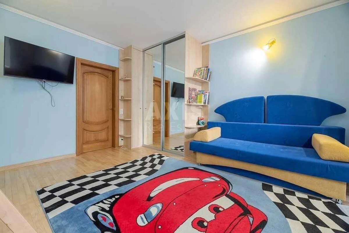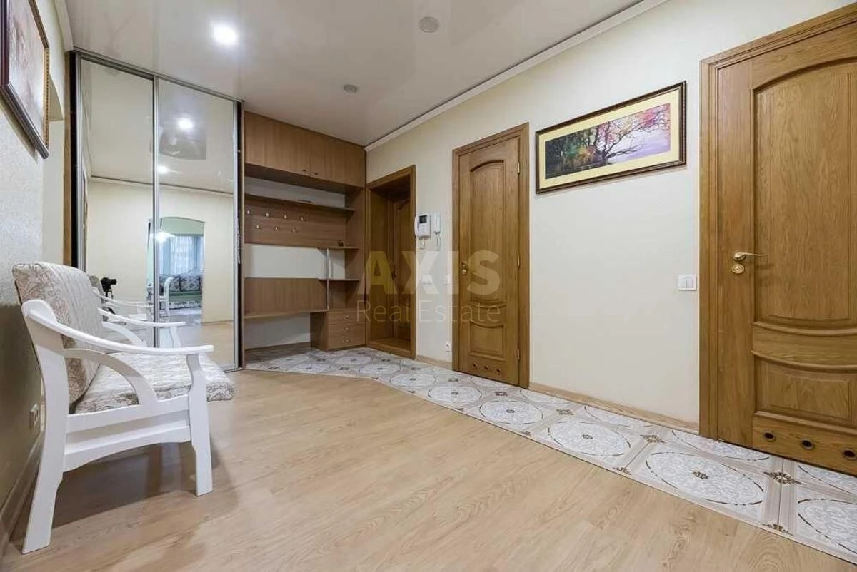3 кімнатна квартира. Виконаний ремонт в сучасному класичному стилі з використанням екологічно чистих матеріалів. В вітальні та коридорі натяжна стеля. Дерев'яні склопакети, на підлозі дорогий паркет з білого ясеня, дерев'яна дубова столярка. Три окремі кімнати. У вітальні встановлено електричний камін . Спальня 36 м з спальною зоною та робочою. Дитяча кімната з робочою зоною. Є кладовка та гардеробна в спальні. Простора кухня -столова ,передпокій .