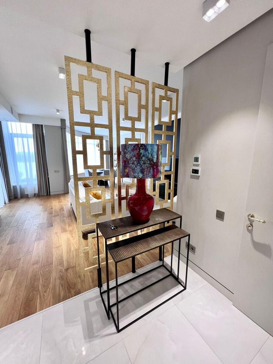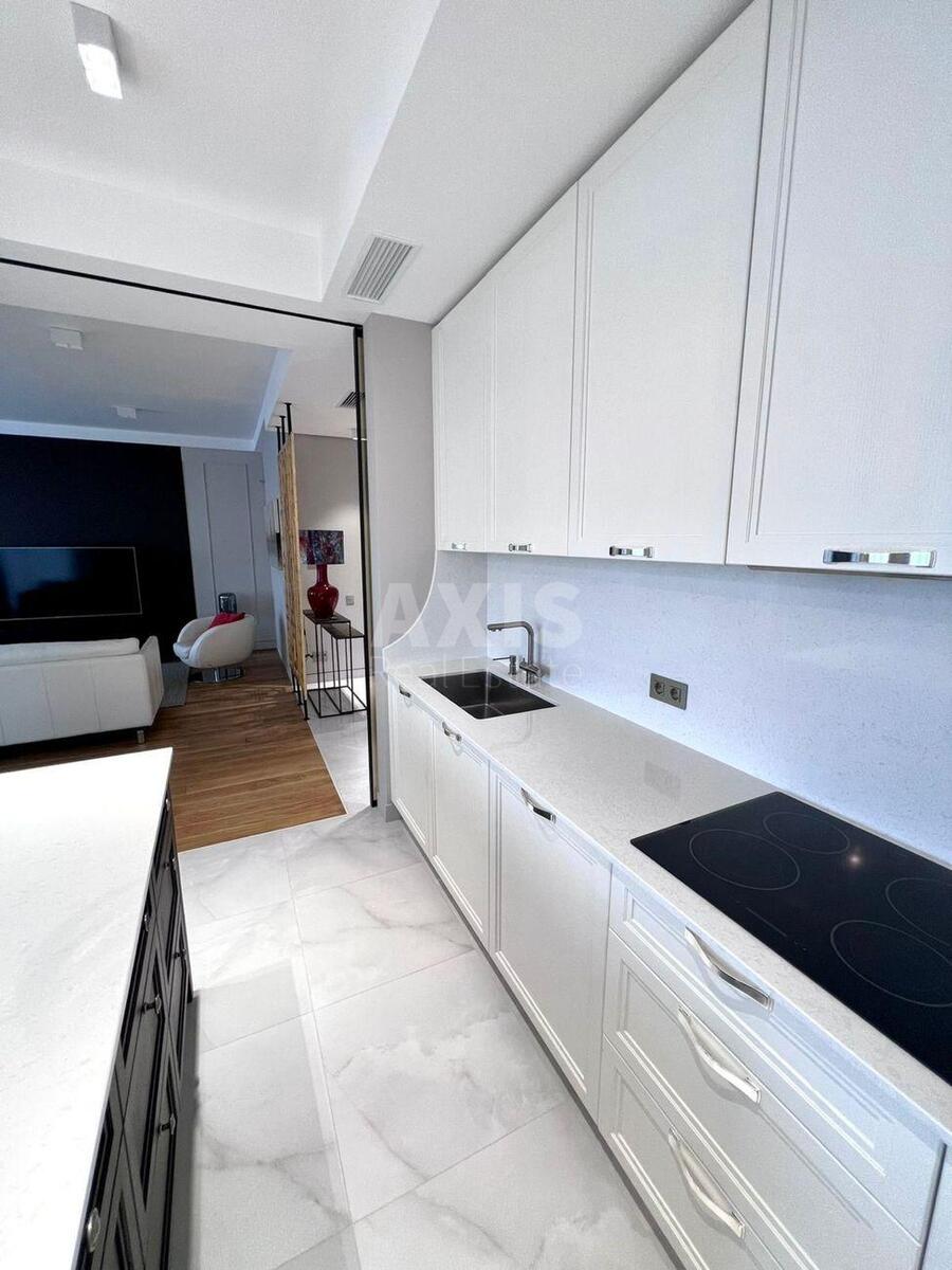 ЖК Riviera Riverside, 3 кімнатна квартира. Стильний, сучасний, авторський дизайн-проєкт із використанням лише якісних і дороговартісних матеріалів. Продумане планування дозволило максимально ефективно організувати простір квартири. Квартира має простору вітальню з кухнею, спальню, багатофункціональну кімнату (кабінет, дитяча, гостьова), два санвузли, пральню, гардеробну, два відкриті балкони. Повністю укомплектована меблями та побутовою технікою, центральною системою кондиціювання. Відкривається панорамний краєвид на Києво-Печерську Лавру та весь правобережний Київ. Закрита територія, охорона, підземний паркінг, власний яхт-клуб, велика прибудинкова територія, дитячий майданчик, спортивний майданчик, просторі лобі. Повна інфраструктура: набережна, пляж, кафе, ресторани, школи, дитячі садки, магазини.
