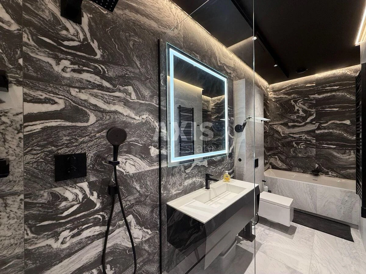 3 кімнатна квартира. Дизайнерський ремонт 2025 року, італійська кухня та меблі, преміальна побутова техніка, кондиціювання, сейф, аякс, посудомийна, пральна та сушильна машини. Все нове, у квартирі ніхто не жив, у наявності навіть рушники та посуд. Все робилося собі. На першому поверсі розташований великий зал-студіо з кухнею-їдальнею, балконом, вітальня з телевізором, диваном, книжковою шафою, санвузол з душовою, техприміщення з пральною, на другому - 2 спальні, велика ванна кімната з душовою та ванною і два гардероби. Велика відкрита тераса розташована на 3 рівні квартири, на даху та має огляд на 3 сторони, площею 72 м2 (k0,3 = 21,8 м2). Обладнана літньою кухнею та терасовими меблями. Поряд на даху розташована власна сонячна електростанція потужністю 3 кВт.