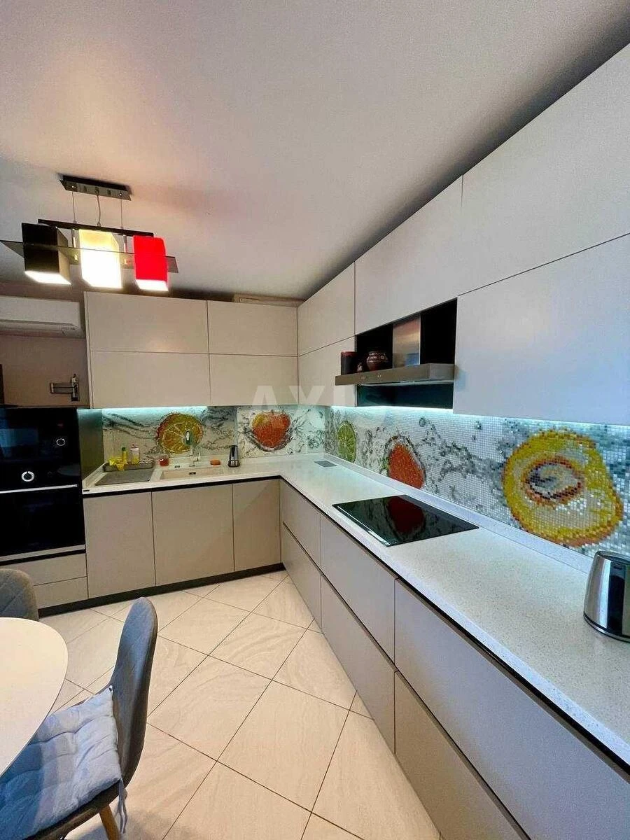 3 кімнатна квартира. Три окремі кімнати, велика вітальня та дві великі лоджії з однієї зроблений кабінет. Квартира обладнана якісною європейською технікою: чотири кондиціонера, дві LCD панелі, холодильник двокамерний , морозильна камера, бойлер, пральна машинка, вбудована мікрохвильова піч, духова шафа , посудомийна машина та індукційна електро лита та камін. В двох санвузлах викладена мозаїка в коридорах та кімнатах лежить якісний німецький ламінат, В кухні-вітальні та в санвузлах підігрів підлоги. В будинку знаходиться консьєрж/відеоспостереження . Біля будинку знаходяться два дитячих майданчика, школа, дитячі та два садочки, стадіон, магазини - АТБ, Новус та медичні заклади. Будинок обладнаний генератором та сонячними панелями. Прямо біля будинку озеро, пісочний пляж, місця для риболовлі та шашликів.