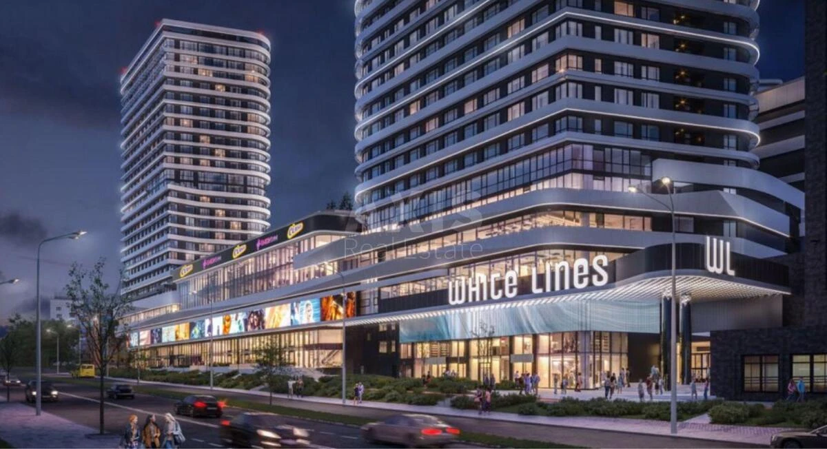 ЖК White Lines, 3 кімнатна квартира. Планування: Кухня-вітальня — 30,18 м². Три окремі спальні: 16,35 / 13,76 / 14,53 м². Два санвузли. Пральня — 2,41 м². Гардеробна — 4,35 м². Простора прихожа — 10,97 м². Тераса — 2,38 м² (рахується з коефіцієнтом 0,3).