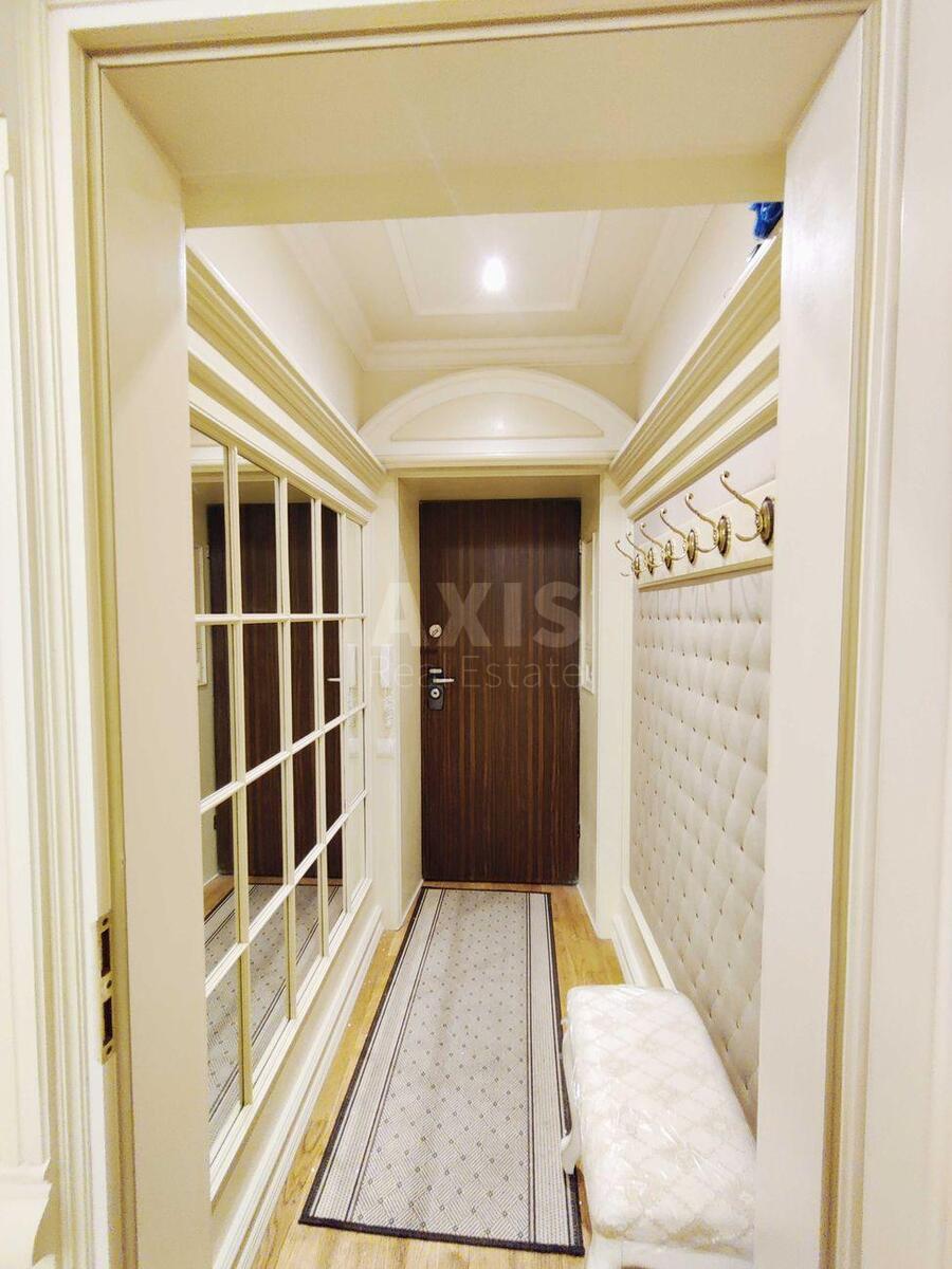 3 кімнатна квартира. Велика простора квартира з панорамним видом на Пейзажній алеї, історичний центр міста: три кімнати, окремий хол, гардеробна, окрема кухня. Інтер'єр - класика, дорогі натуральні матеріали, італійські меблі, продається з повною обробкою і побутовою технікою. У квартирі - передпокій, хол (вбудована шафа для верхнього одягу), кухня 15 м, вітальня-їдальня 27 м, кабінет на два робочих місця, спальня, гардеробна. Квартира двостороння (північ - південь), сонячно, світло, просторо. Балкон - лоджія засклений. Чистий зелений двір з великою безкоштовною парковкою для мешканців будинку. Повну заміну асфальтового покриття у дворі будинку проведено у 2021 році, в період реконструкції Пейзажної алеї. Все нове, охайне та чисте. Поруч Золоті Ворота, Софійська та Михайлівська площа, Андріївський узвіз.