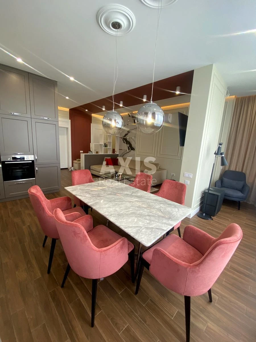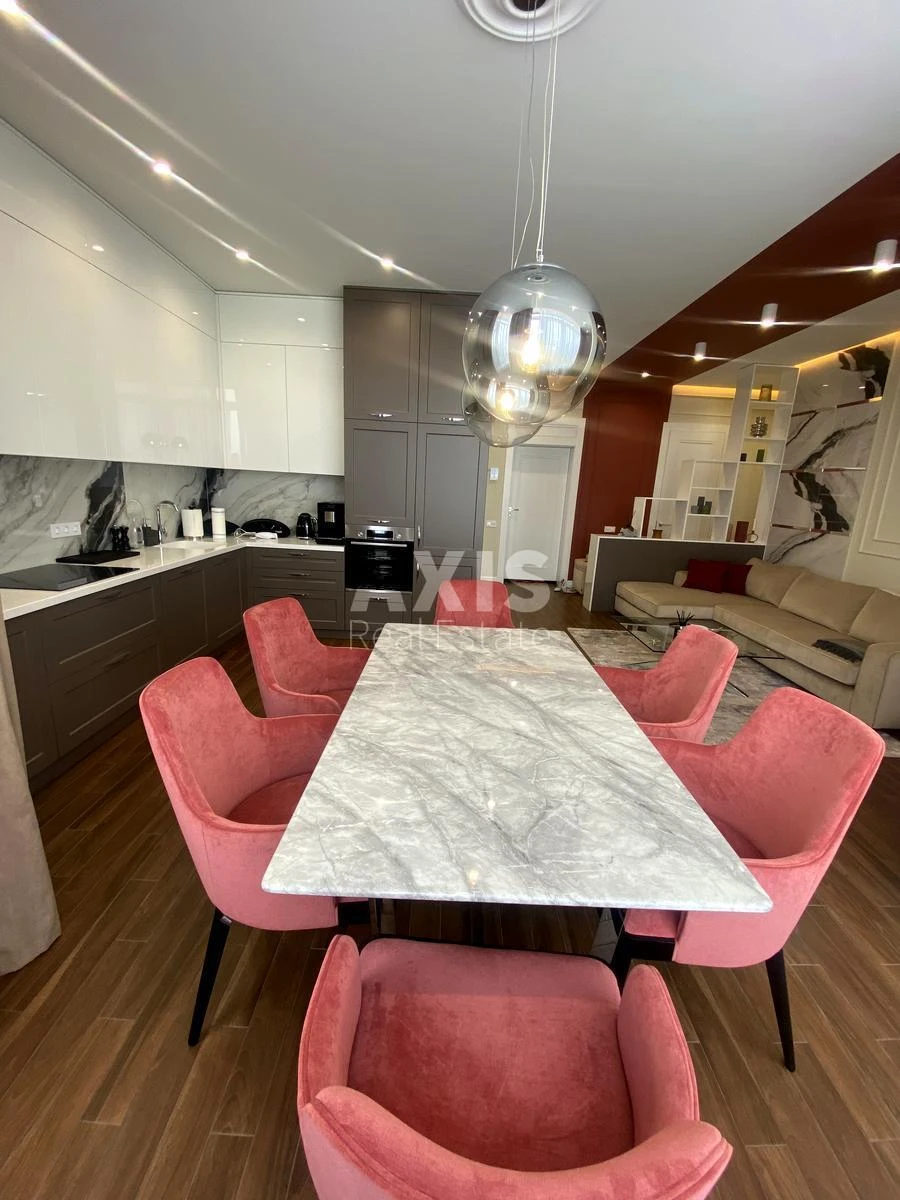 3 кімнатна квартира. Квартира площею 84 кв. У квартирі: кухня-студіо, вбиральня, ванна кімната, кабінет (з диваном який розкладається), спальна кімната. Виконаний ремонт високого рівня, вся техніка miele, підігрів підлоги, очищувач повітря, система фільтрації води.