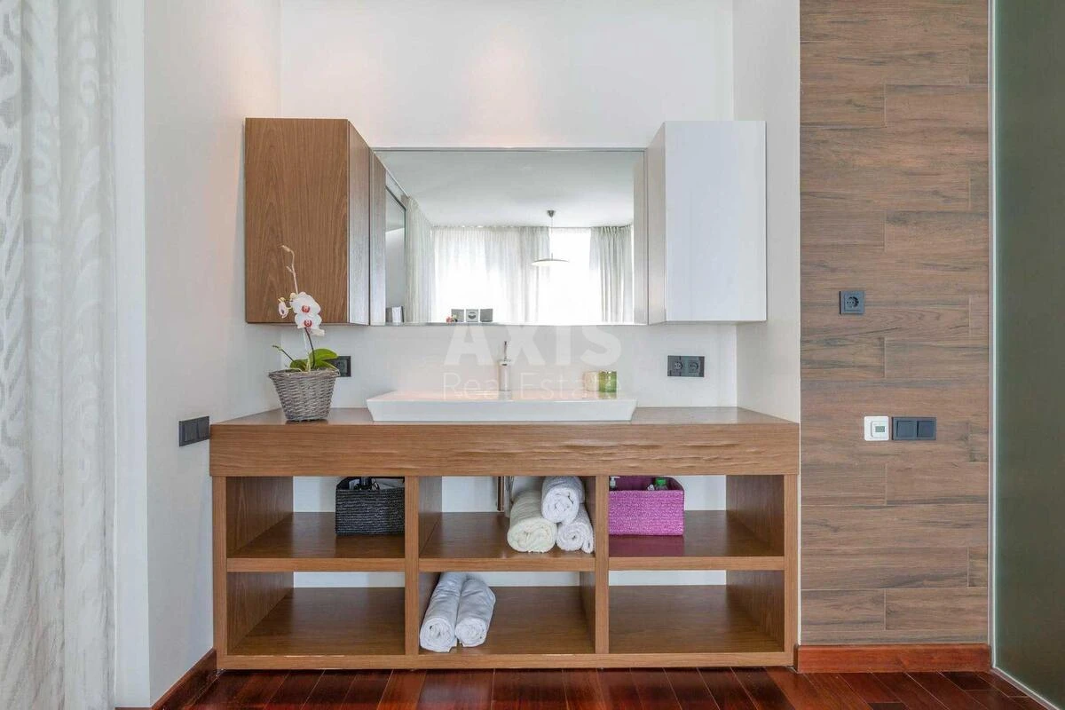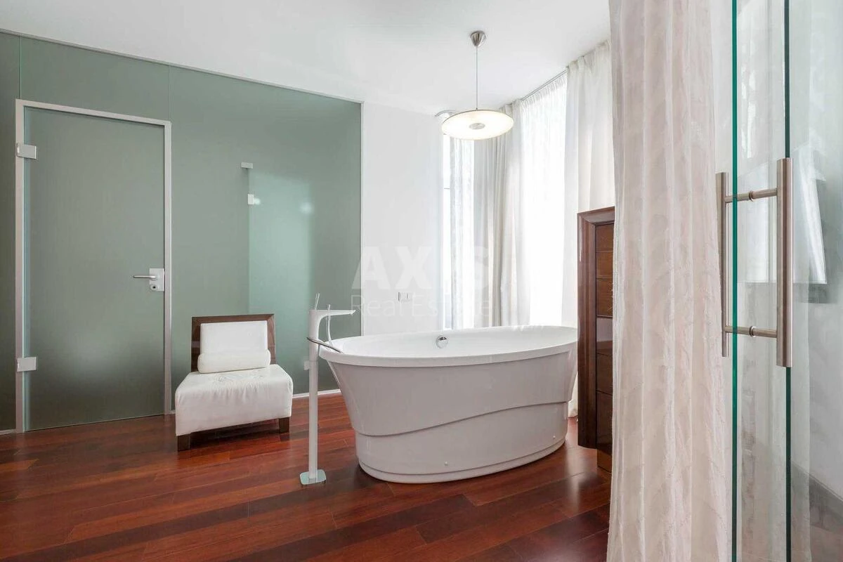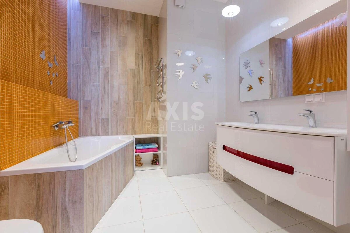 4 кімнатна квартира. Простора квартира з дизайнерським ремонтом, виконаним з використанням дорогих оздоблювальних матеріалів, зокрема італійського мармуру та оніксу, паркетної дошки і теплої підлоги. Планування включає простору вітальню з каміном, Master Bedroom з гардеробною, дитячу з гардеробною, кухню-їдальню, ванну кімнату, три санвузли і гостьовий санвузол. Оснащена високотехнологічною побутовою технікою Gorenje, Miele, Siemens, AEG, дорогою німецькою сантехнікою та італійською плиткою. У квартирі встановлено 4 телевізори і 5 кондиціонерів. Кухня та меблі - італійського виробництва. Житловий комплекс "Порі Року" - це сучасний комплекс з концепцією "Місто в місті", закритою територією та підземним паркінгом. Забезпечено високий рівень безпеки завдяки роботі консьєржа та охорони. Будинок виконано з акцентом на комфорт і стиль. Комплекс розташований у зеленій і тихій парковій частині Києва, поруч із Солом'янським ландшафтним парком. Інфраструктура ЖК включає дитячий садок, кабінет лікаря, ресторан, магазин. Для жителів доступні упорядковані зони відпочинку та спортивні об'єкти, включаючи басейн. Парковка - наземна, багаторівнева і підземна; гостьова парковка - наземна. Територія комплексу безпечна й озеленена відповідно до сучасних норм.