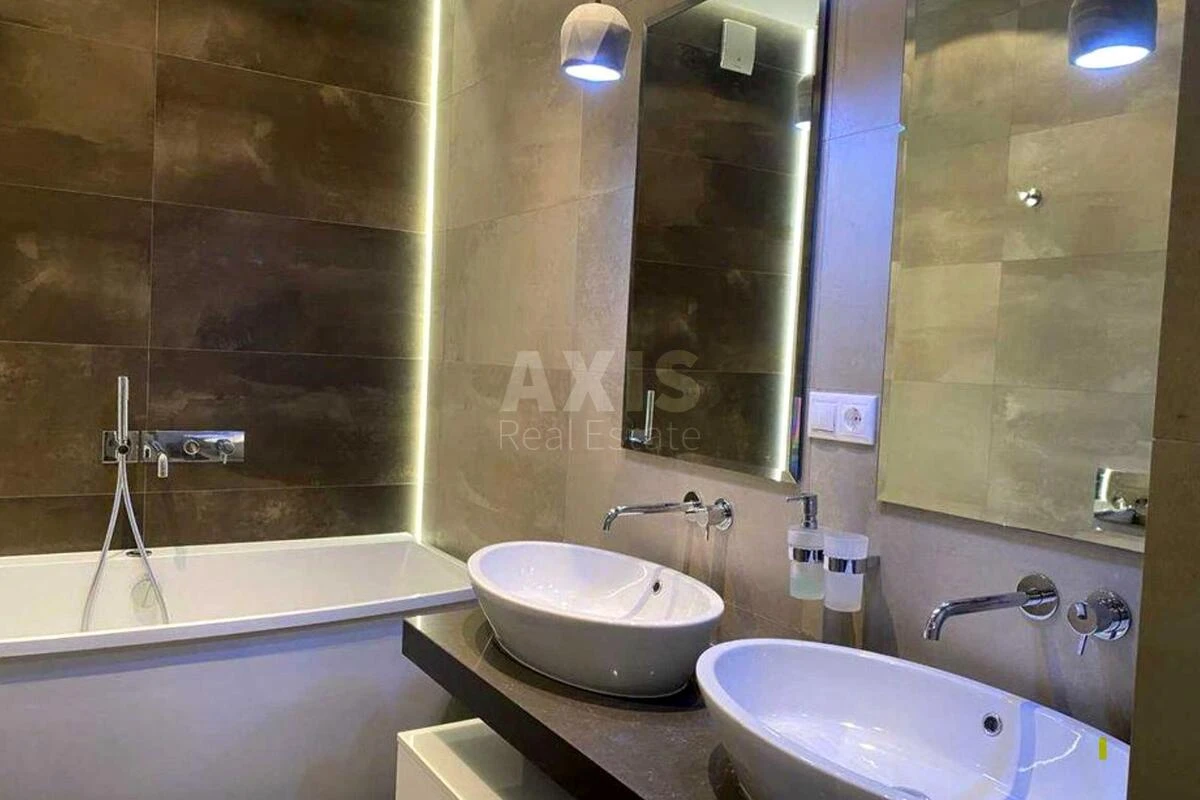 ЖК Новопечерські Липки, 4 кімнатна квартира. Простора дизайнерська квартира площею 120 м² з панорамним видом на зимовий та літній басейни. Житловий комплекс преміум-класу з унікальною територією — справжнє місто в місті: зелень, фонтани, зони відпочинку, спортивні майданчики, бігові доріжки. Оснащення:, окрема гардеробна з сейфом, окрема пральна кімната (пральна + сушильна машина), багато шаф для зберігання, дизайнерський ремонт з дорогих матеріалів, меблі та техніка від провідних світових виробників.