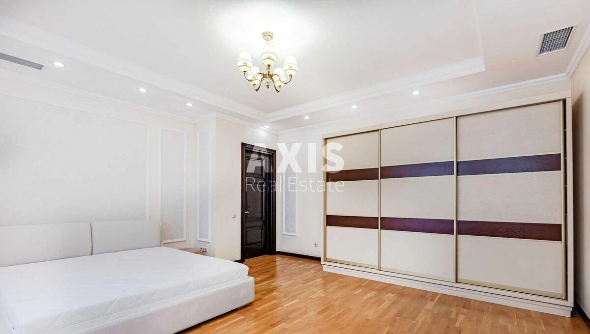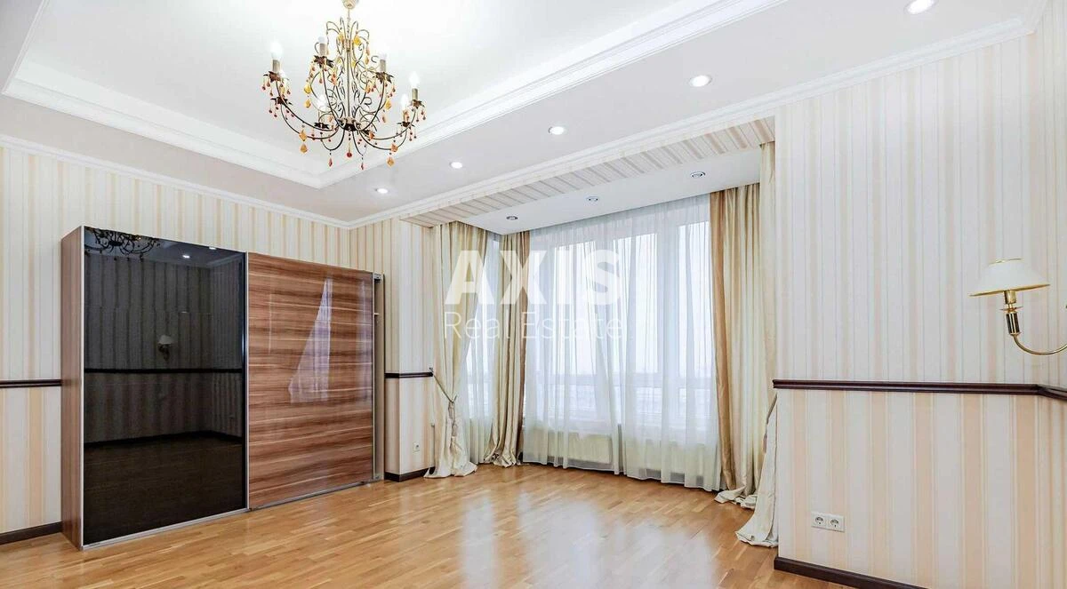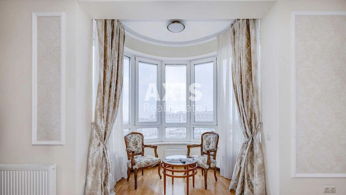 4 кімнатна квартира. Простора вітальня, три спальні, три санвузли, гардеробна. Панорамні вікна відкривають краєвид на місто. Встановлена вбудована кухня з побутовою технікою: холодильник, духова шафа, плита, посудомийна та пральна машини, сушильна машина. Є телевізор і Wi-Fi. Частково мебльована. Для комфорту передбачені кондиціонери, ванна, душова кабіна, гардероб. Будинок має чотири ліфти, один із яких спускається до паркінгу. Територія закрита та охороняється, при вході, на в’їзді та на стоянці працює воєнізована охорона. Житловий комплекс знаходиться у затишному Липському дворі, в оточенні скверу. У дворі та на території парку облаштовані дитячий і спортивний майданчики, зона відпочинку з фонтаном і клумбами. Є фітнес-центр із басейном. Двоповерховий підземний паркінг розрахований на 190 автомобілів, також є гостьова стоянка на 20 місць. Поряд ст. м. Хрещатик.