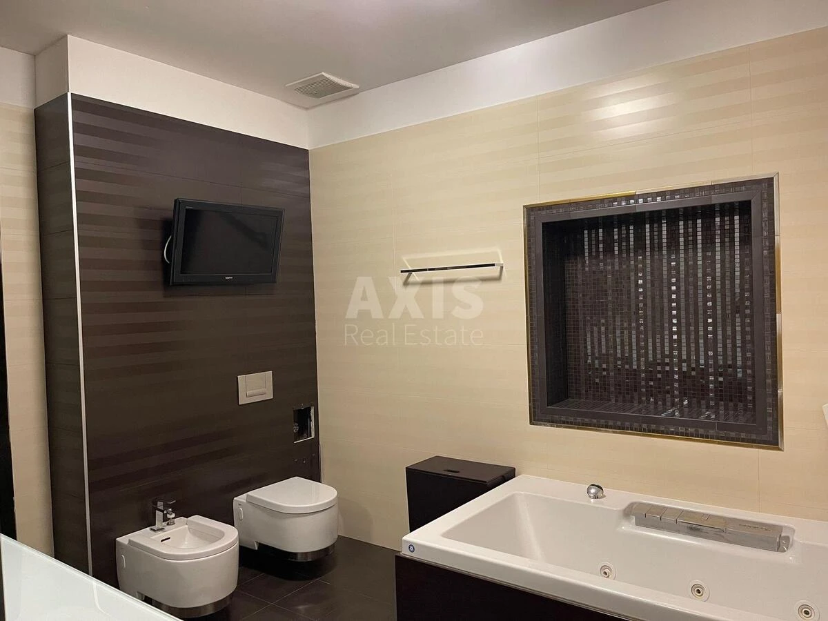 5 кімнатна квартира. Авторський ремонт Vip-рівня у стилі Арт-деко! Художній розпис на стінах, електрокамін, паркет з масиву, мармур. Підігрів підлоги, система очищення води, кондиціонери. Колекційні меблі світових виробників. Італійська кухня з мармурової стільниці. Побутова техніка SIEMENS та Miele.