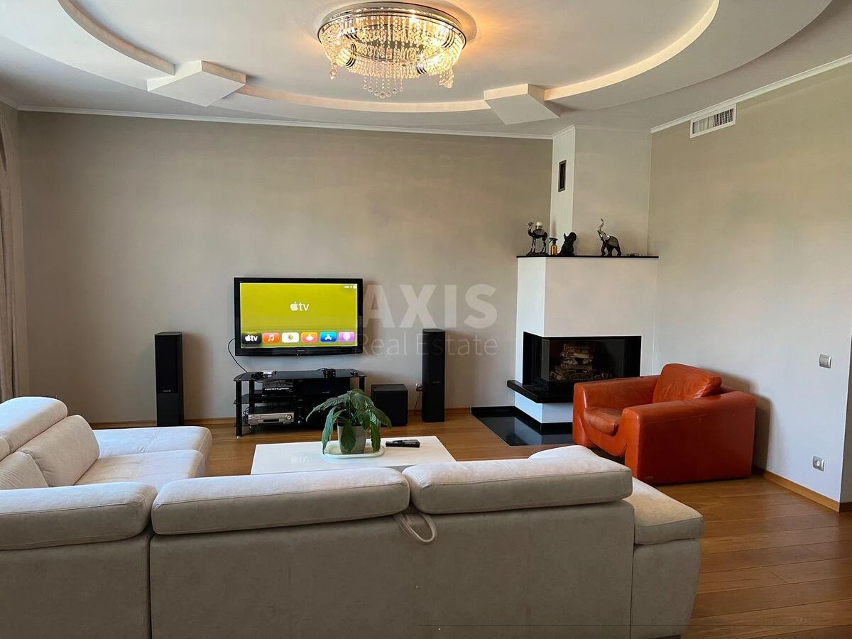 5 кімнатна квартира. Перший рівень: просторий хол. Гостьова спальня. Робочий кабінет. Вітальня з справжнім каміном. Кухня-їдальня з краєвидом на парк. Гостьова ванна кімната. Комора. Майстер-спальня з гардеробною та власною ванною кімнатою (є сауна). Дитяча спальня також із гардеробом та ванною кімнатою. Вихід на величезну панорамну терасу.