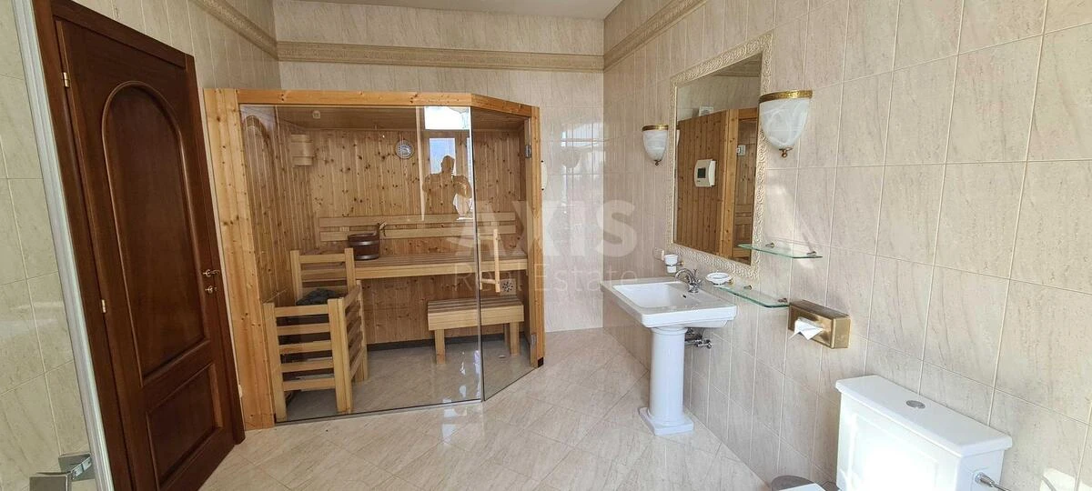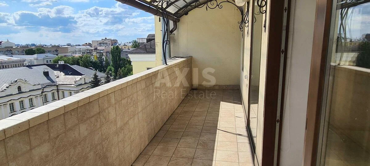 5 кімнатна квартира. У квартирі виконаний якісний ремонт з натуральних матеріалів. Квартира двостороння, з просторої відкритої тераси вид на Верховний Суд України, навпроти на вулицю Липську. В квартирі діючий камін та зимовий сад, сауна, гардеробна, три санвузли, має індивідуальне опалення, у дворі з охороною закріплено два паркомісця, будинок з ліфтом. Дуже тихе та затишне місце.