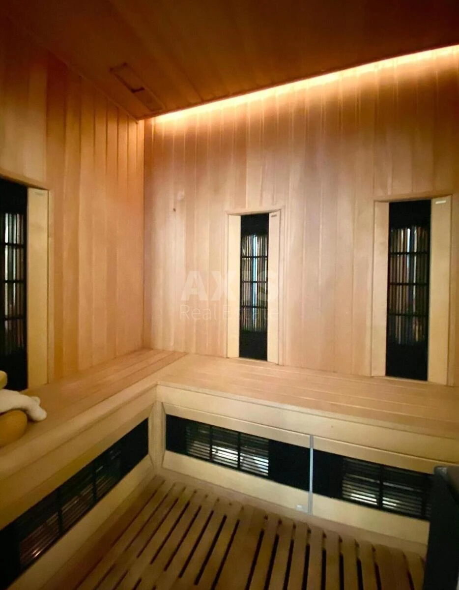 5 кімнатна квартира. Елітний двоповерховий пентхаус, створений для поціновувачів простору, стилю та комфорту. Планування продумане до дрібниць: простора спальня площею 30 м² із власною гардеробною, дві дитячі кімнати, окремий кабінет для роботи чи творчості, великий зал, що ідеально підходить для зустрічей із родиною та друзями. З квартири відкривається неймовірний панорамний краєвид на місто, який можна спостерігати з великої тераси. Для повного релаксу у квартирі облаштовано сауну та джакузі. Меблі виготовлені на замовлення в Італії — кожен елемент інтер’єру підкреслює ексклюзивність і вишуканість простору. Великі панорамні вікна по всьому периметру наповнюють кімнати природним світлом, створюючи атмосферу відкритості та гармонії. Будинок — частина сучасного житлового комплексу з доглянутим внутрішнім двором, спроєктованим для спокою та приватності мешканців. Вхідна група виконана в преміальному стилі, встановлено відеоспостереження та систему безпеки. На території комплексу — озеленені зони для відпочинку, дитячий майданчик і місця для прогулянок. Поруч розташовані магазини, ресторани, школи та інші об’єкти міської інфраструктури, що забезпечують комфортне життя у самому серці міста.