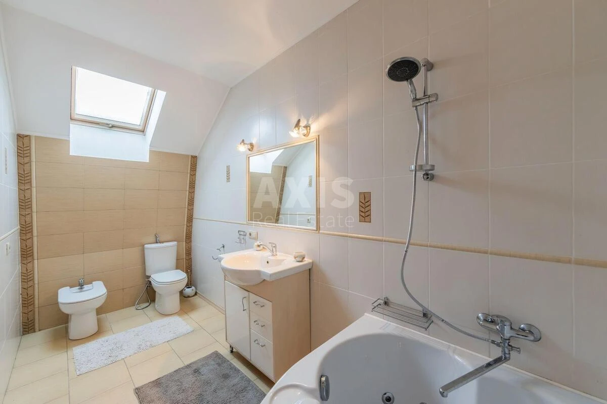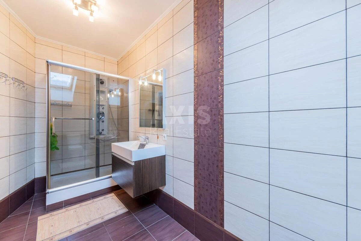 5 кімнатний будинок. В будинку є ліфт. На першому поверсі сходинки на 2 поверх, санвузол, постірочна, винний лех, котельня. Вихід на терасу, на який є зона барбекю, басейн і спа-зона: хамамм, сауна, душові. На другому поверсі є вітальня + кухня окрема зона. У вітальні є кінотеатр, зона відпочинку. Є зона для прийому гостей + є невеликий стіл, якщо гостей буде небагато. Кухня із барною стійкою є окрема зона де можна приготувати, щоб Ваші гості побачили процесс приготування їжі. Також на 2 поверсі є 2 спальні: господарська і гостьова. Господарська спальня має свій під'єднаний санвузол: гідромассажна ванна, будуар, туалет. Будинок дуже затишний і гарно побудований. На 3 і 4 рівні є 2 спальні, між якими є 2 санвузли: 1 санвузол із душовою кабіною і 2 санвузол із ванною. В кожній із цих спалєн стоїть установка з ударниками + установлені робочі місця. Також на 4 поверсі є спортивна зала + величезна бібліотека. Гардероб.