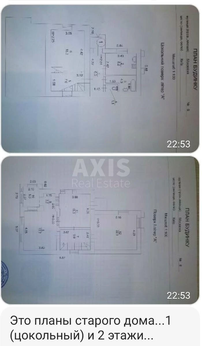 3 кімнатний будинок. З 2 спальнями, 2 санвузли, кухня-вітальня, цокольний поверх (будинок під оздоблення), другий будинок 90-х років побудови, 120 кв.м. + 2 гаража, розташований на початку ділянки, при вході (у житловому радянському стані), можливо під знесення за бажанням. Площа ділянки – 8 соток, прямокутної форми.