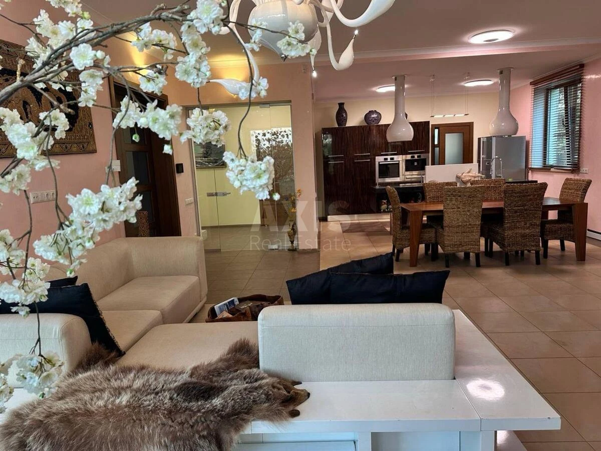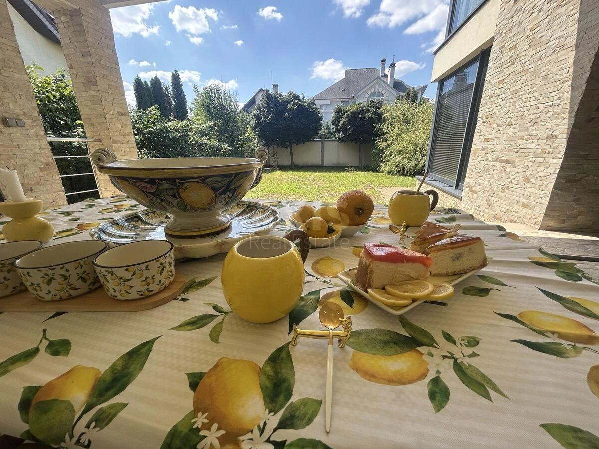 5 кімнатний будинок. Будинок оснащений просторим укриттям-підвалом з повноцінною кухнею, пральнею та санвузлом з душовою кабіною. Будинок будувався для себе з використанням високоякісних матеріалів та сучасних рішень. Складається з чотирьох рівнів: цоколь, перший і другий поверхи та мансарда. Простора кухня-вітальня займає 60 м². В наявності п’ять спалень, чотири санвузли, дві кухні з вбудованою технікою Bosch, три гардеробні, чотири тераси та технічні приміщення. До переваг також відносяться власний міні-SPA з сауною та душовою, мебльований будинок для охорони, бензиновий генератор ESE 6000 BS, зручний заїзд, охоронювана територія та два шлагбауми.