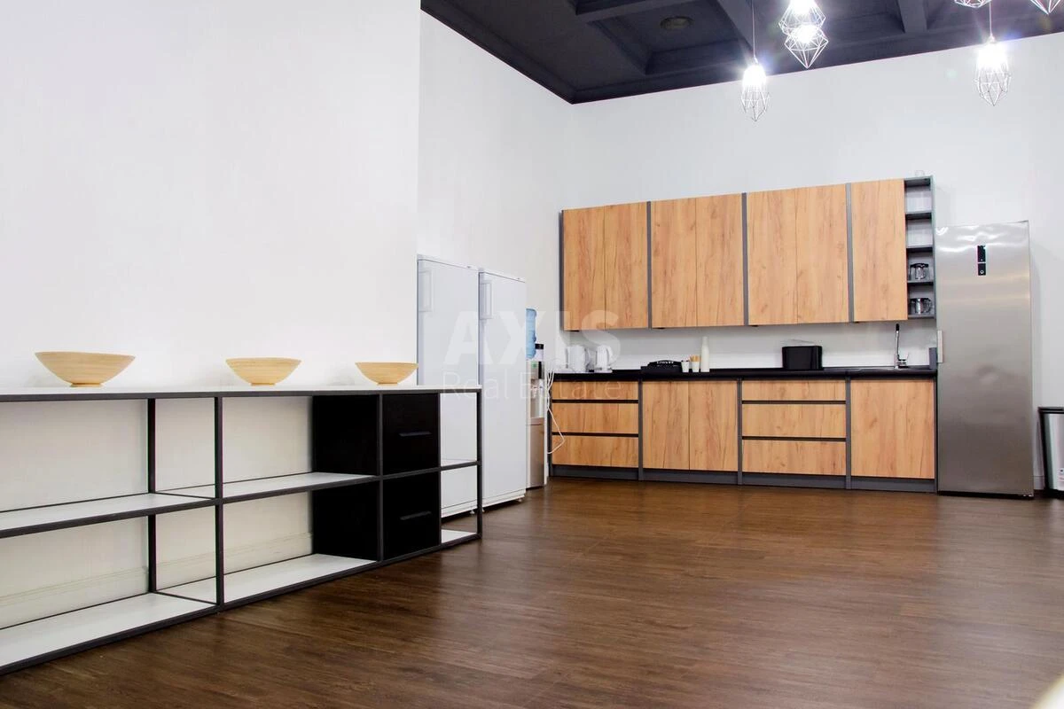 Офісне приміщення. Офіс має продумане комбіноване планування, яке гармонійно поєднує open space та окремі кабінети — оптимальний баланс для ефективної командної роботи та приватності. Простір наповнений світлом завдяки панорамним вікнам, а сучасний ремонт створює приємну атмосферу для щоденної діяльності. Власний санвузол. Окрема кухня для співробітників. Просторий open space + кабінетна система. Якісний сучасний інтер’єр.