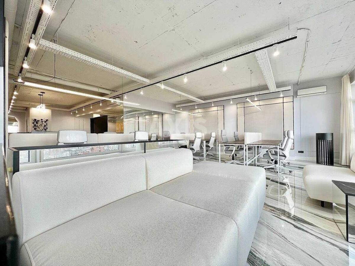 Офісне приміщення. Планування: опен спейс, просторі зони, кабінети, кухня, з/в. Стан – із ремонтом. Офіс оснащений системою центрального кондиціювання, пропускною системою, цілодобовою охороною. Оренда сучасного офісу з меблями в бізнес центрі Карнегі.