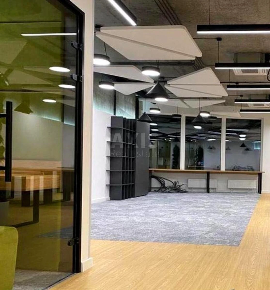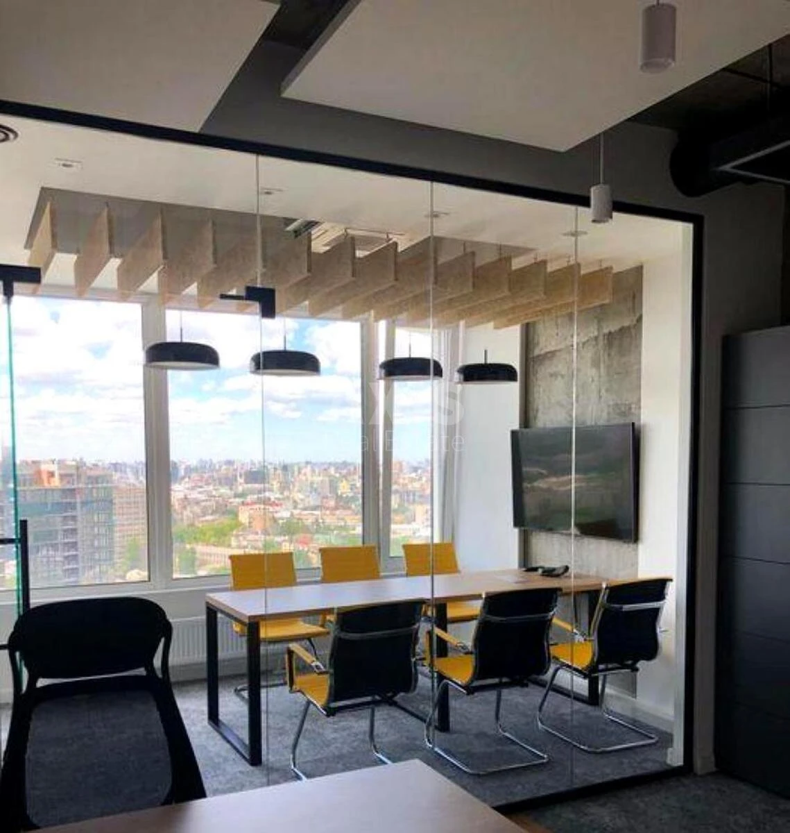 Офісне приміщення. Планування та інтер’єр: Дизайнерський ремонт. Окрема переговорна кімната з панорамним видом на місто. Скайп-кімната. Два слипбокси. Окрема кухня. 2 санвузли, один з душовою кабіною. Продумане планування для комфортної командної роботи.