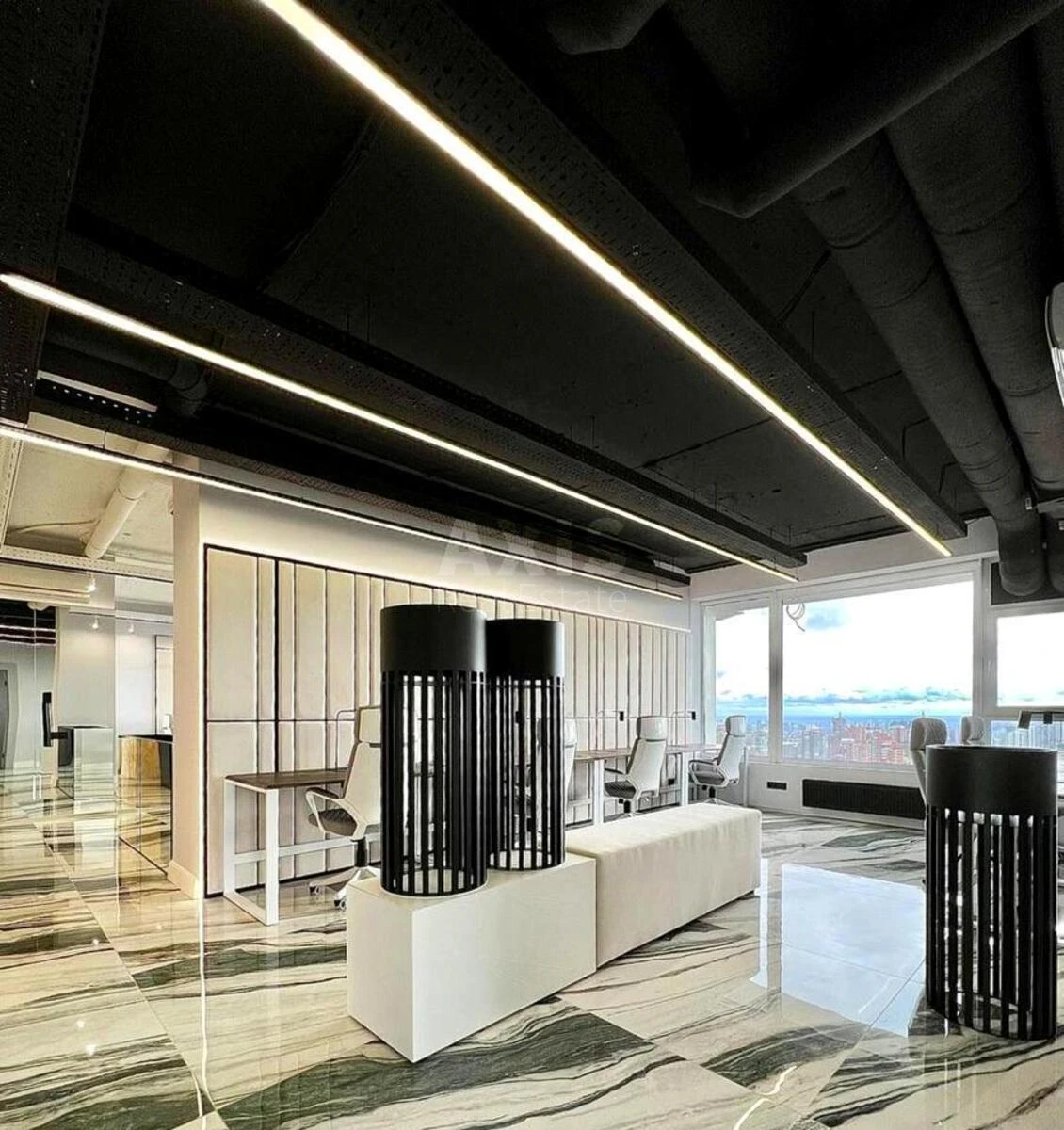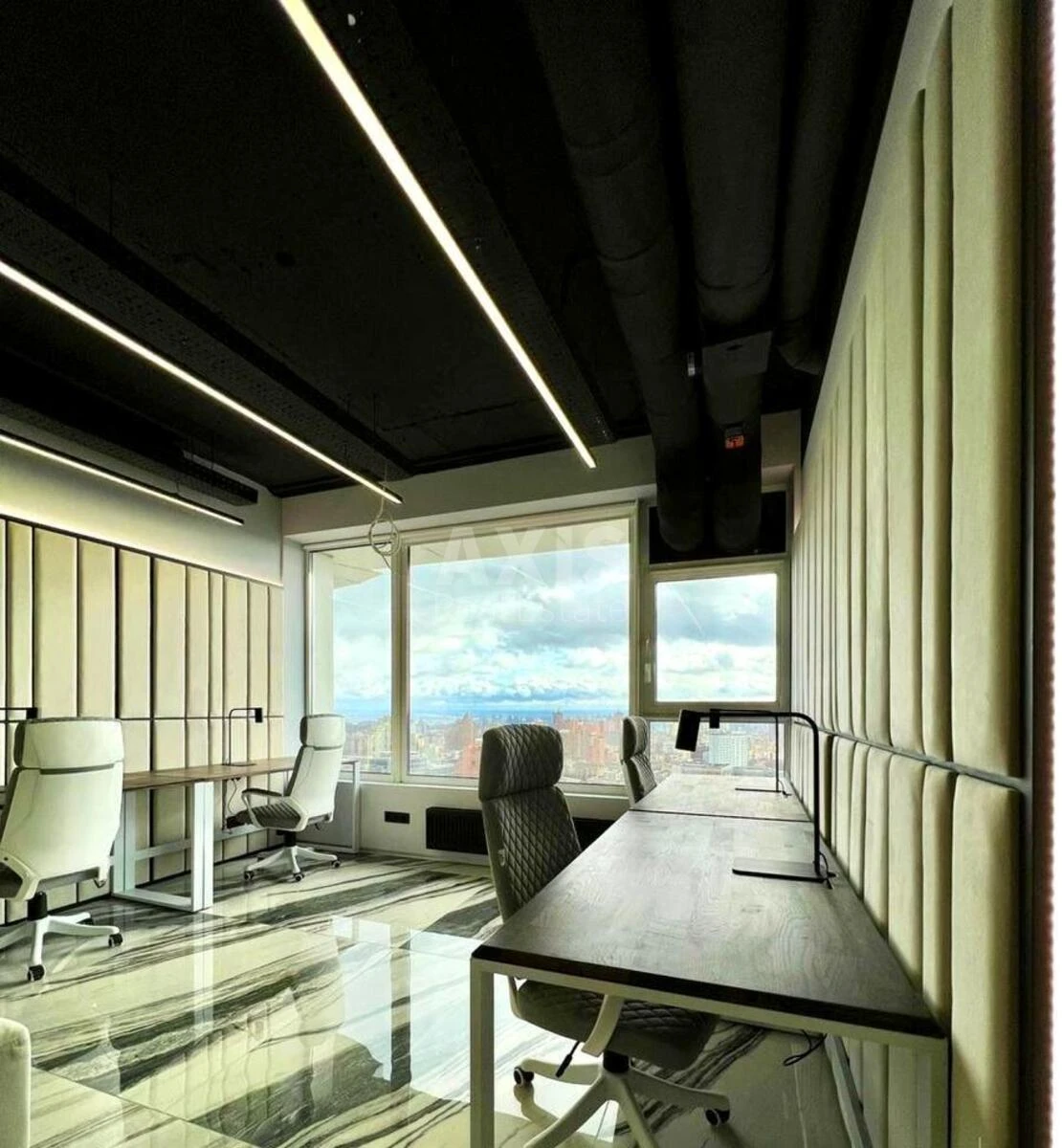 Офісне приміщення. Офіс автономний під час відключень. Також працють ліфти. Планування: 3 робочі зали. Кабінет керівника. Переговорна кімната. Кухня. Skype-зона. Санвузол. Душова. Гардеробна. Застосовані технології акустичного дизайну — офіс повністю шумоізольований.