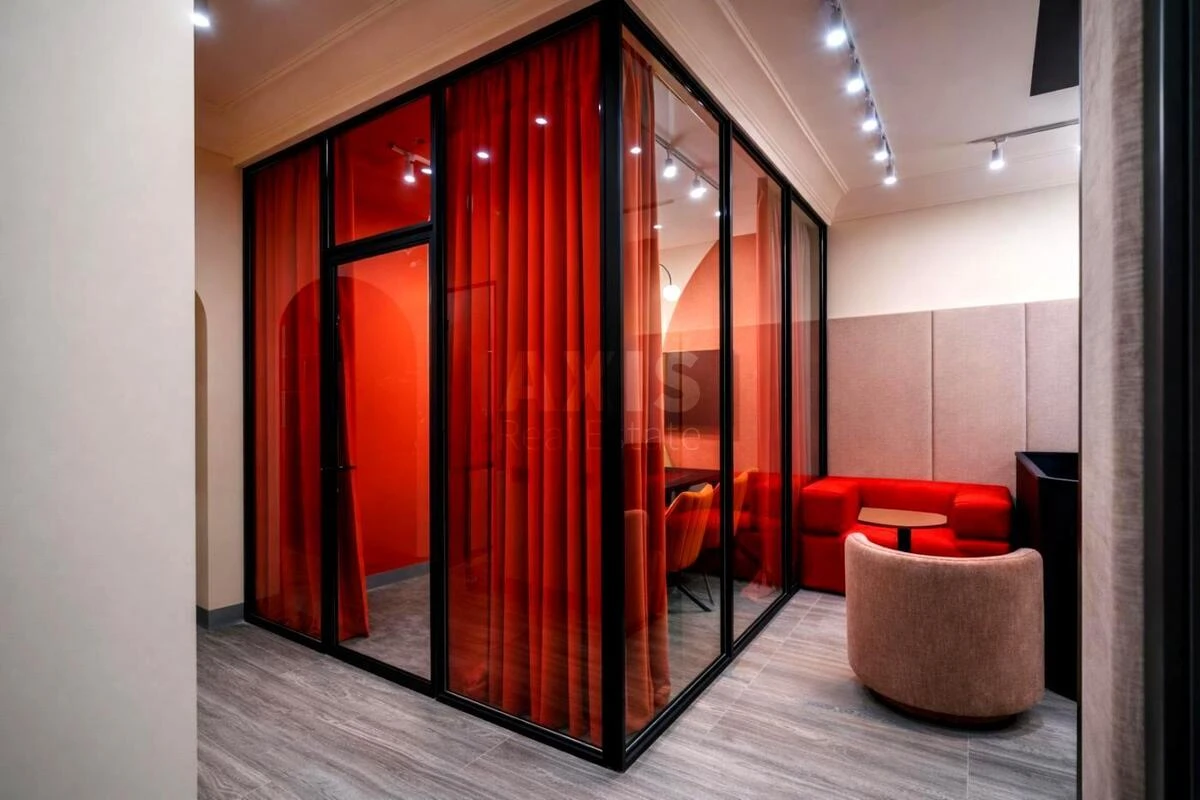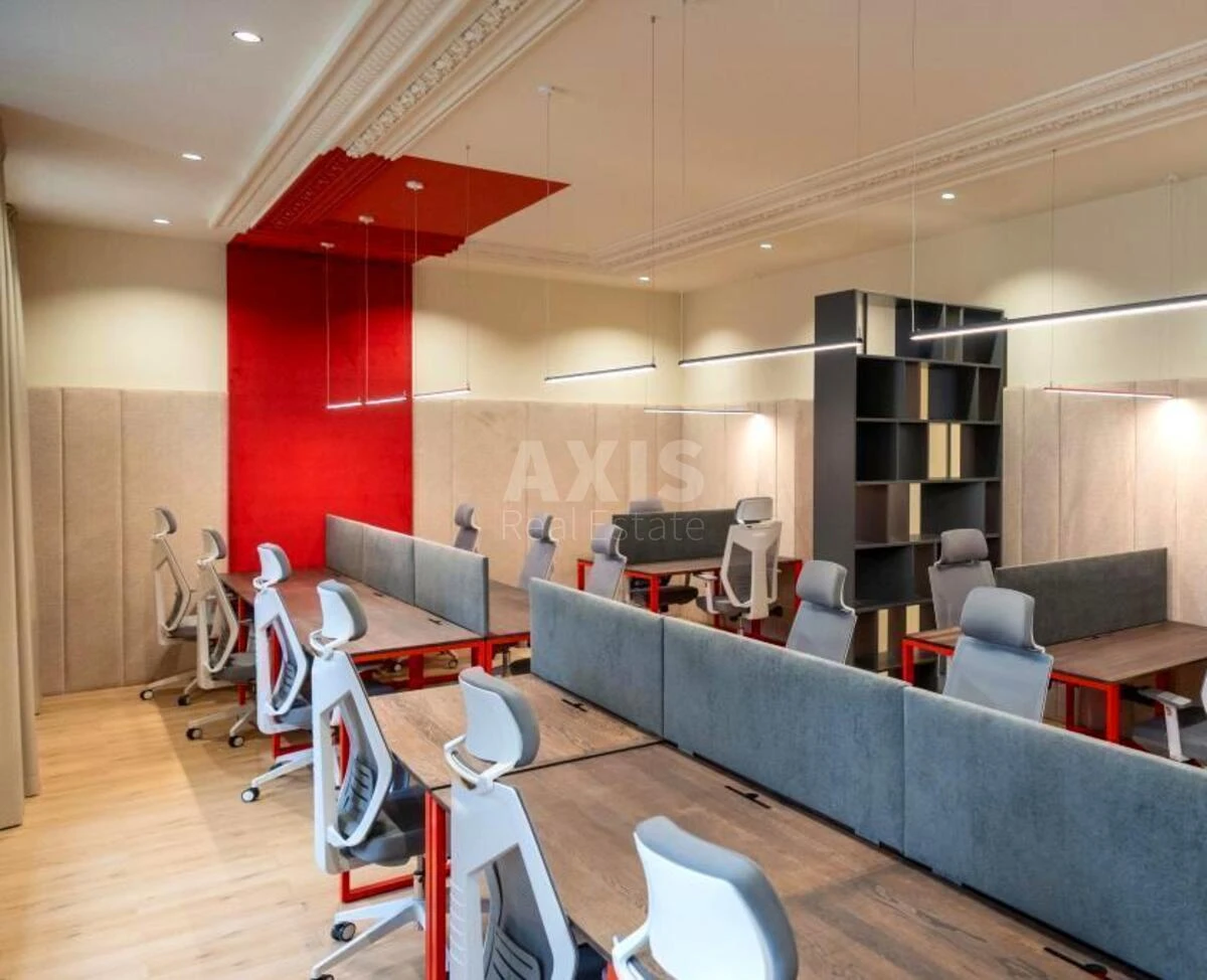 Офісне приміщення. Функціональне планування: open space, кабінет керівника, переговорна кімната, skype-зона, кухня, 2 санвузли, 2 балкони. Оснащення та зручності: фасадний будинок, окремий фасадний вхід, висота стелі 3,5 м, система безперебійного електропостачання.