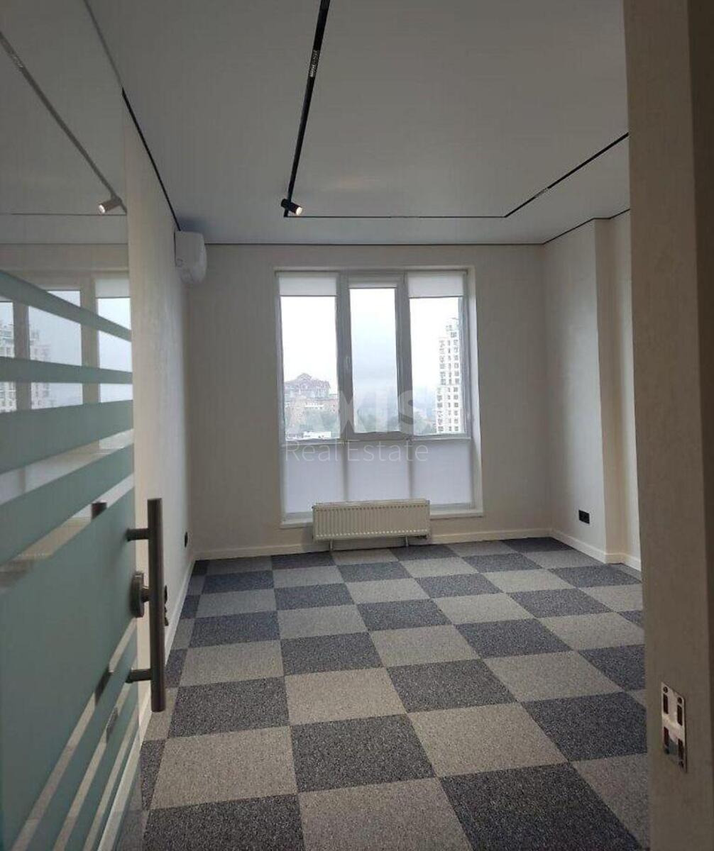 ЖК Багговутівський, офісне приміщення. Плануванням передбачено: ресепшен, три просторі кабінети, два санвузли, повноцінна кухня 14 м2 з лоджією 5 м2. Зроблений офісний євроремонт, кондиціонери, вбудовані кухонні меблі, розводка офісного освітлення. Інтернет та охоронна сигналізація на розсуд орендарів. Є сучасні радіатори з терморегуляторами та індивідуальними лічильниками обліку. У будинку працює своя автономна котельня. Будинок обладнаний тихими швидкохідними ліфтами, які спускаються в підземний паркінг, що знаходиться під охороною та відеоспостереженням. Також паркінг працює як укриття.