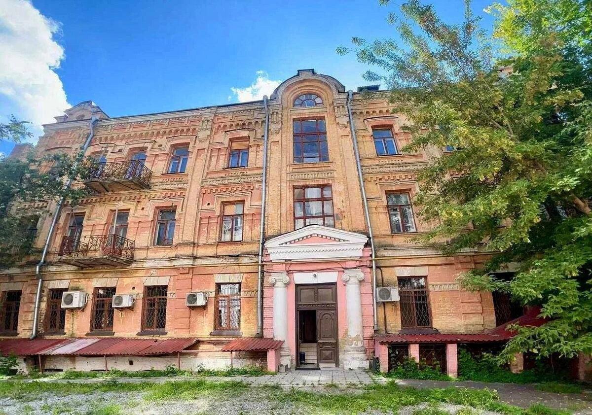 Офісне приміщення. Тип об’єкта: окремо розташована будівля. Стан: під реконструкцію. Площа: 1452 м² (цоколь + 3 поверхи), стелі — 3,5 м. Парковка: приватна у дворі. Матеріал: цегла. Рік побудови: 1898.