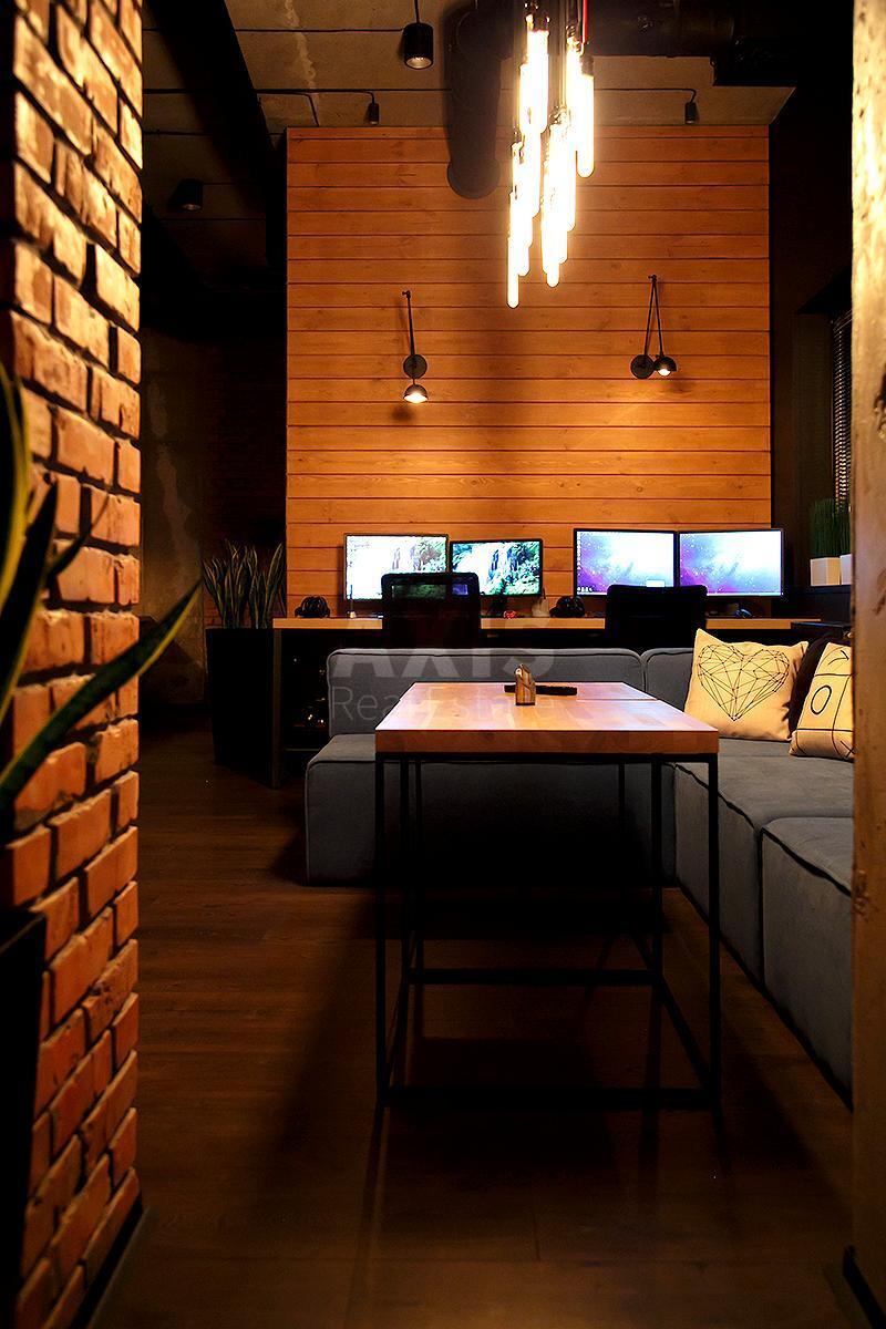 Офісне приміщення. Планування: дві кухні, два санвузли (один з душем), один окремий кабінет, 3 опен-спейси + зона відпочинку. Офіс оснащений: кухонною технікою (холодильники, мікрохвильовки, кавомашиною, диспоузером, осмосом та фільтром, вентиляцією та кондиціюванням усіх приміщень, всією необхідною сантехнікою, стаціонарними столами та стільцями, трьома плазмовими телевізорами, диванами та шафами/стелажами.