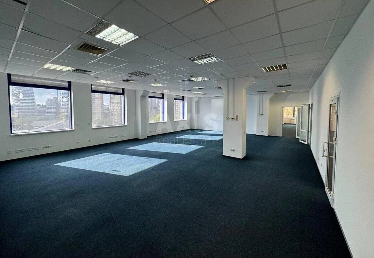 Офісне приміщення. Характеристики: Фасад - вентильований утеплений, окна- алюмінієві з енергозбережним подвійним склопакетом, оптико-волоконні комунікації, вентиляція центральна -чиллер-фанкоил Daikin, і кондиціонування - центральна припливно-витяжна, система сповіщення про пожежу, пожежна сигналізація, відеоспостереження, система охоронної сигналізації. Офіс: повністю готовий ремонт, стелі - підвісні, світильники - офісні растрові, стіни - забарвлені у білий колір.
