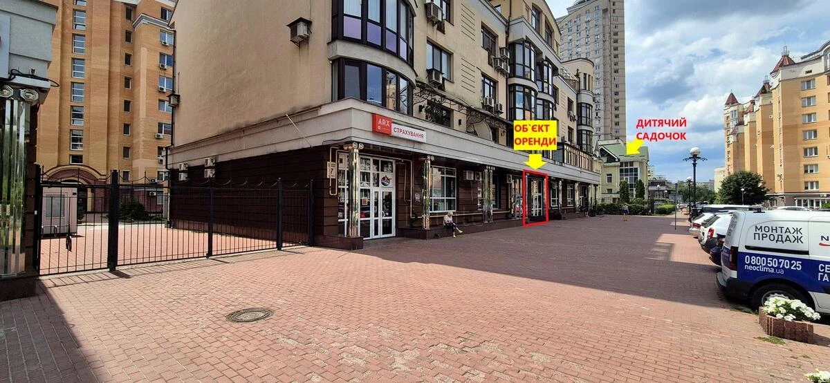 Офісне приміщення. Якісний ремонт. Частково мебльований. Покриття підлоги пробкове та плитка. Сигналізація, відеоспостереження, кондиціонер, лічильники, якісне освітлення. Ідеально для студії йоги, дитячих занять, творчої майстерні чи спортивної студії. Парковка на 10 авто перед входом. Навпроти клініки 'Медіком', прямий вихід в парк Наталка, прогулянкова зона, острів Оболонський, затока річки Дніпро. Поруч ТРЦ 'Блокбастер', 'IKEA', 'METRO', метро Оболонь, Почайна – 5хв.їзди.