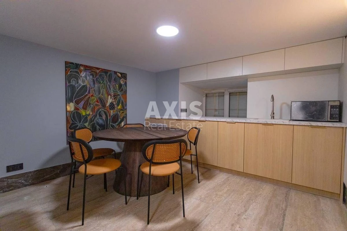 Офісне приміщення. Стан приміщення: новий, сучасний, дизайнерський ремонт, із застосуванням сучасних технологій акустичного дизайну - офіс повністю знешумлений, повністю укомплектований сучасними якісними меблями. Розрахований орієнтовно на 15 робочих місць На кухні є вся необхідна для офісу техніка: холодильник, мікрохвильова піч, посудомийна машина. Система кондиціювання, клімат-контроль. Фасадний будинок, фасадний вхід. Офіс знаходиться на 1-му високому поверсі зі своїм виходом на заднє подвір'я.