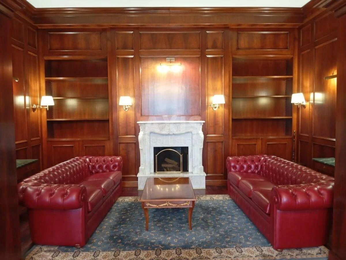 Офісне приміщення. Перший блок (305м2) - приймальня, мінікухня, кімната для охорони, водіїв, санвузли (окремо для керівника та для персоналу), кабінет керівника із зоною відпочинку та каміном, кімната переговорів, два додаткові кабінети. У приміщеннях зроблено висококласний ремонт із використанням якісних матеріалів у класичному стилі.