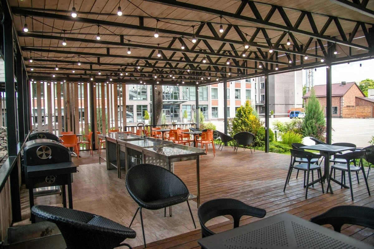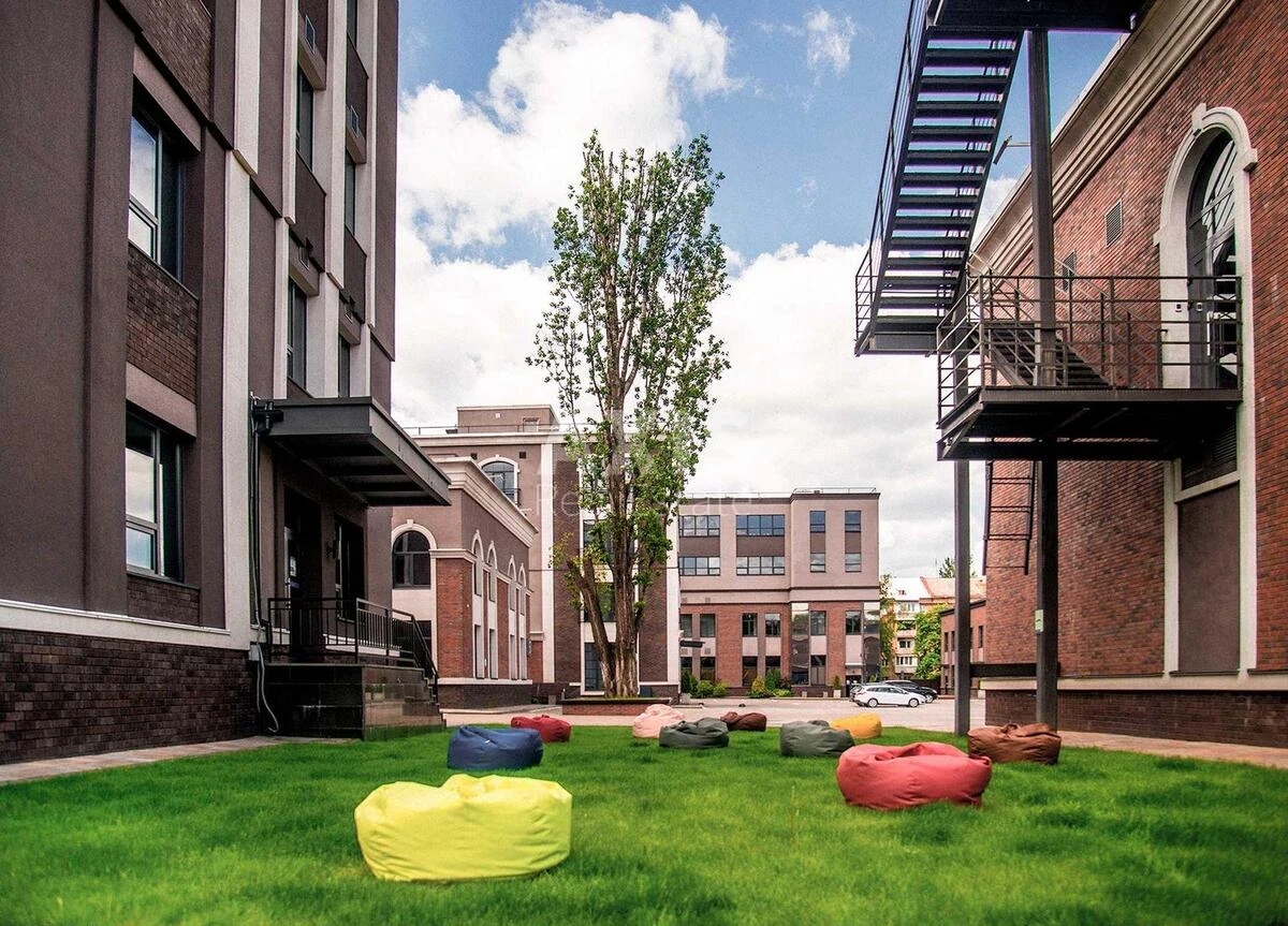 Офісне приміщення. Завдяки вдалому плануванню та панорамним вікнам, приміщення наповнене природним світлом, що створює комфортні умови для роботи. Офіс openspace та кабінети, кухня, кладова, санвузли. Сучасний ремонт, перегородки шумоізоляційні. Потужна інфраструктура бізнес центру: Затишний дворик з ландшафтним дизайном для перерви на каву та зелена територія обладнана зона відпочинку для резидентів з альтанками з BBQ. Зелена територія з вуличними тренажерами. Стильні лаунж-зони у холах корпусів.