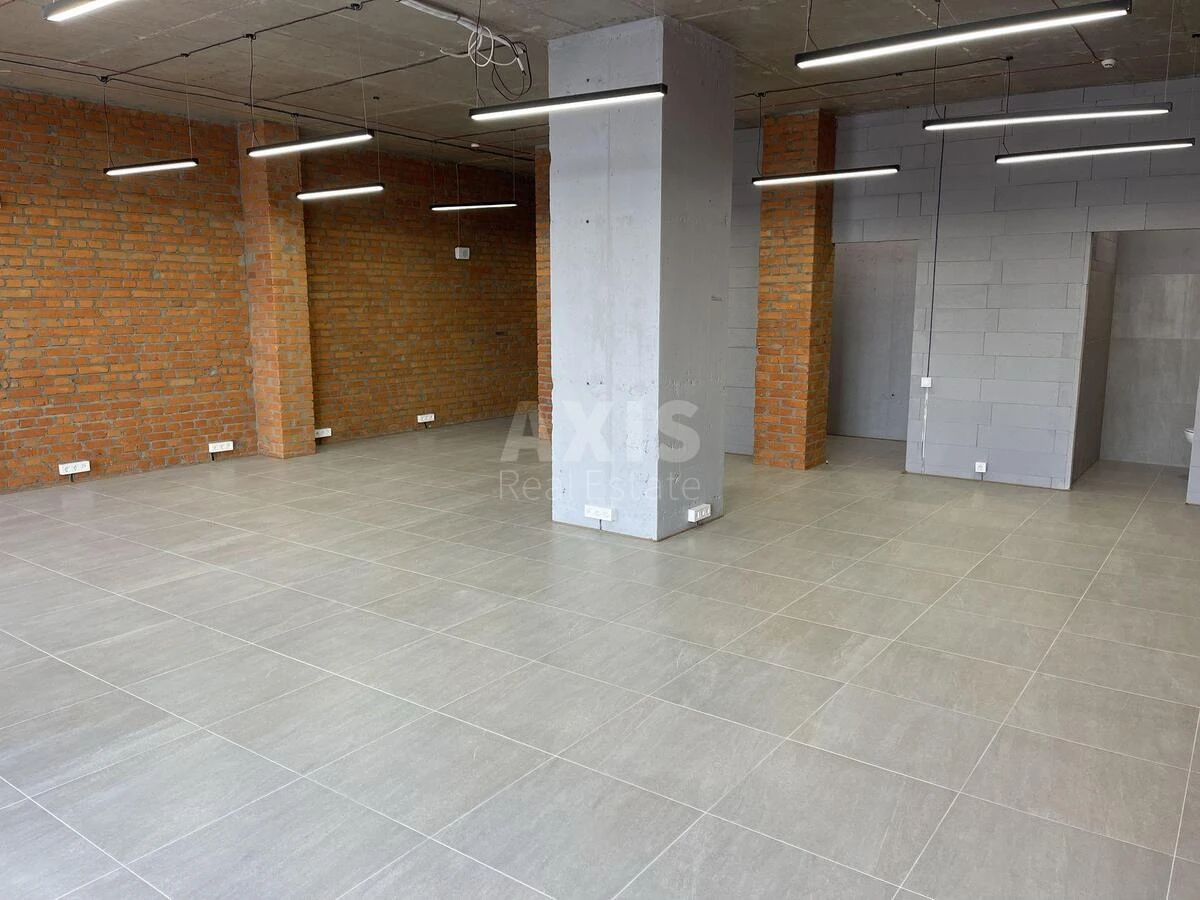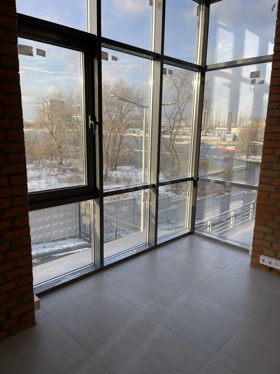 ЖК 'River Stone', офісне приміщення. Н/Ф, 2й поверх. S загальна = 108 кв.м. 2 окремих входи. Н = 3,4 м. 30кВт. Комфорт: панорамні вікна, підземний паркінг, охорона території, меблі на кухні, кондиціонер, грузовий ліфт. Опалення: індивідуальне електро.