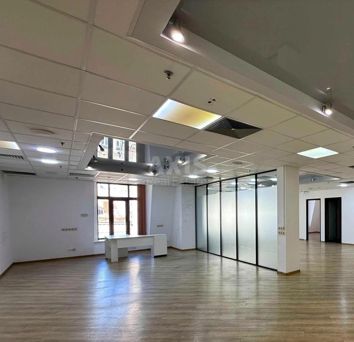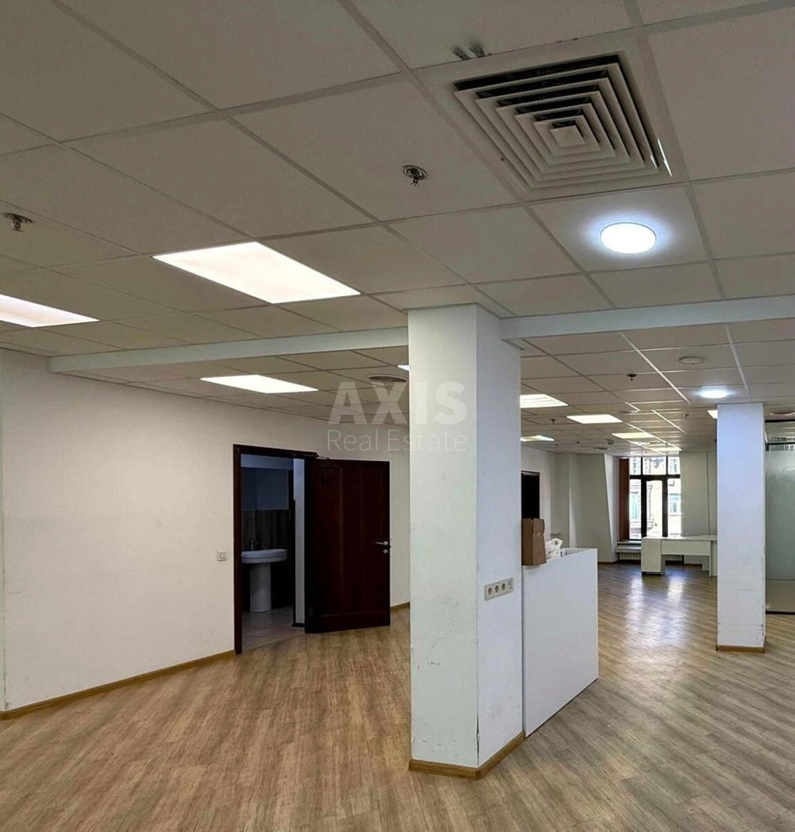 Офісне приміщення. Район із розвиненою інфраструктурою: адміністративні установи, ресторани, кафе, зручна транспортна розв’язка. Розташування: поруч із центральним входом, ліфтами, санвузлами та паркінгом. Планування: 3 великі open space зони, 2 окремі кабінети, переговорна, кухня, роздільні санвузли, серверна. Стан: якісний ремонт у сучасному стилі, світлі тони, офіс готовий до заїзду.